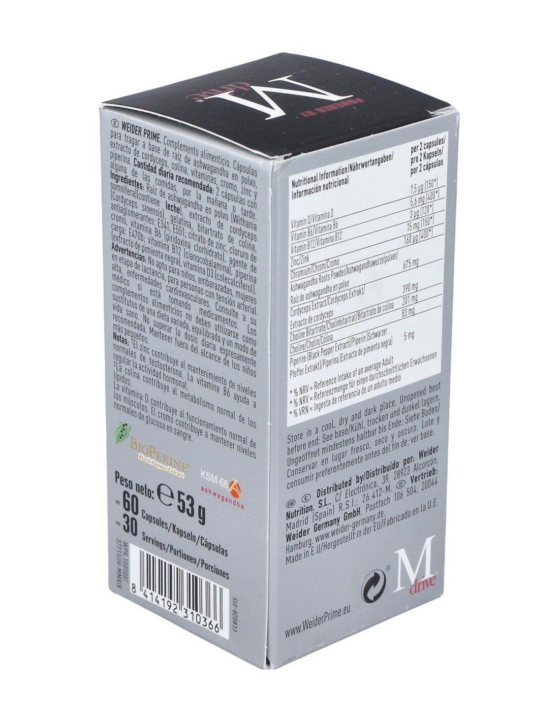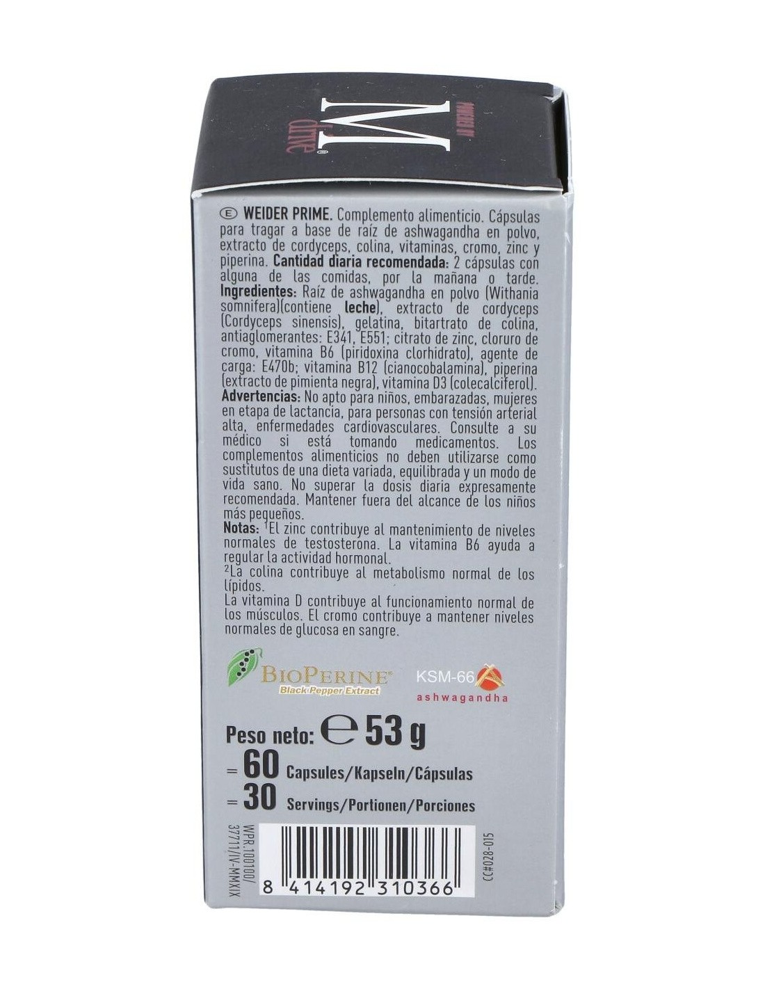 Bioperine: forma patentada de piperina, mejora la absorción y biodisponibilidad de los ingredientes presentes en Weider Prime.