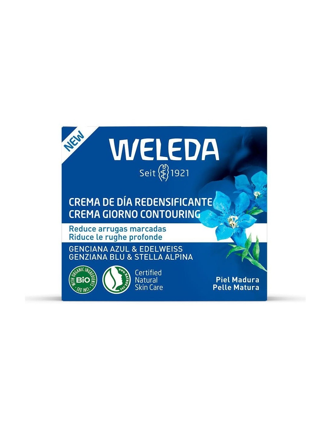 WELEDALa Crema de Día Redensificante de Genciana Azul y Edelweiss de Weleda es una fórmula hidratante que redefine el óvalo facial, rellena y redensifica la