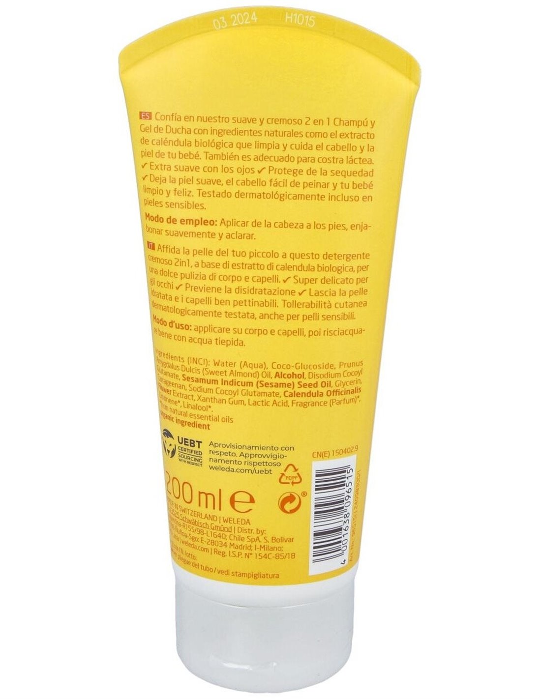 WELEDAChampú & Gel de Ducha de Caléndula de Weleda limpia suavemente piel y cabello. El aceite de sésamo, el aceite de almendra y el extracto de caléndula,
