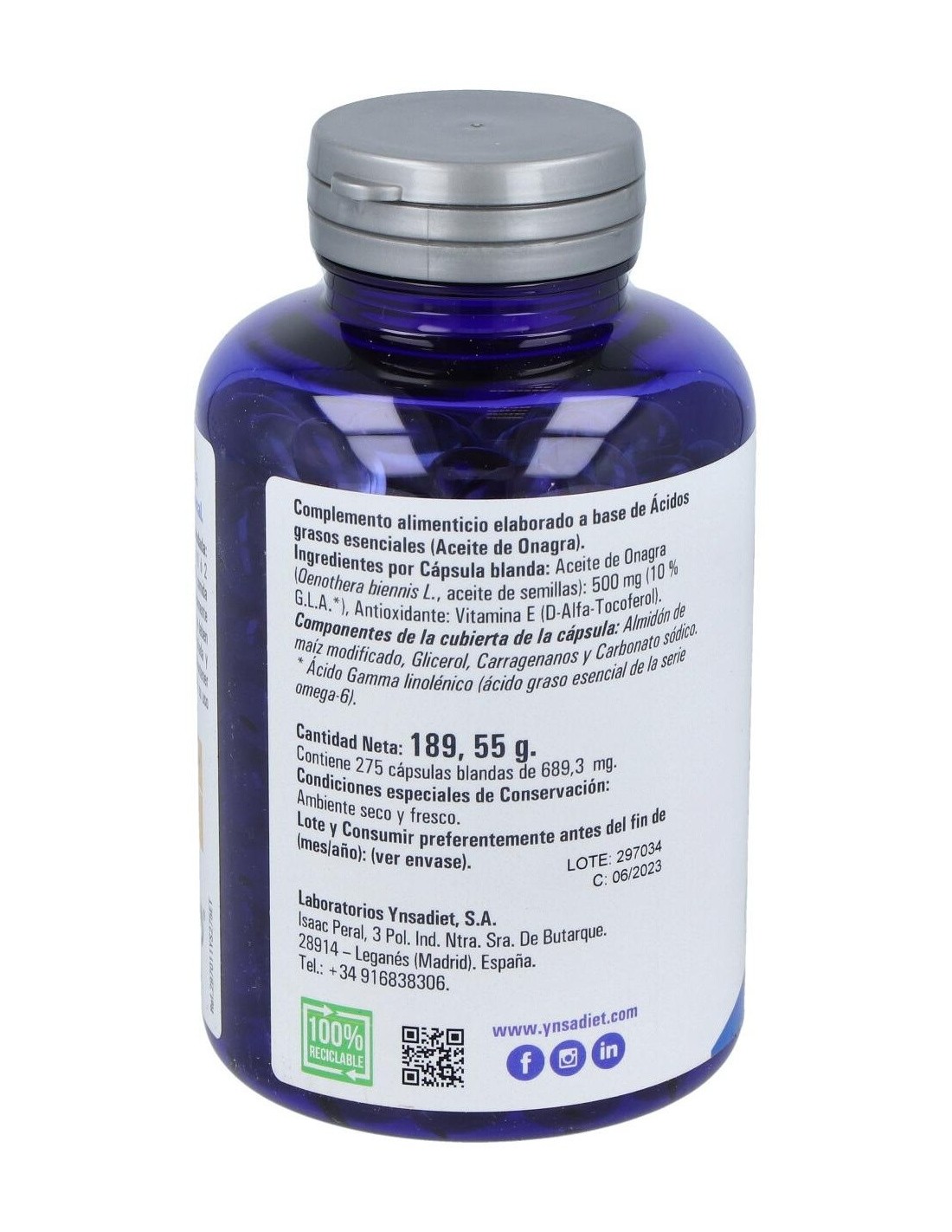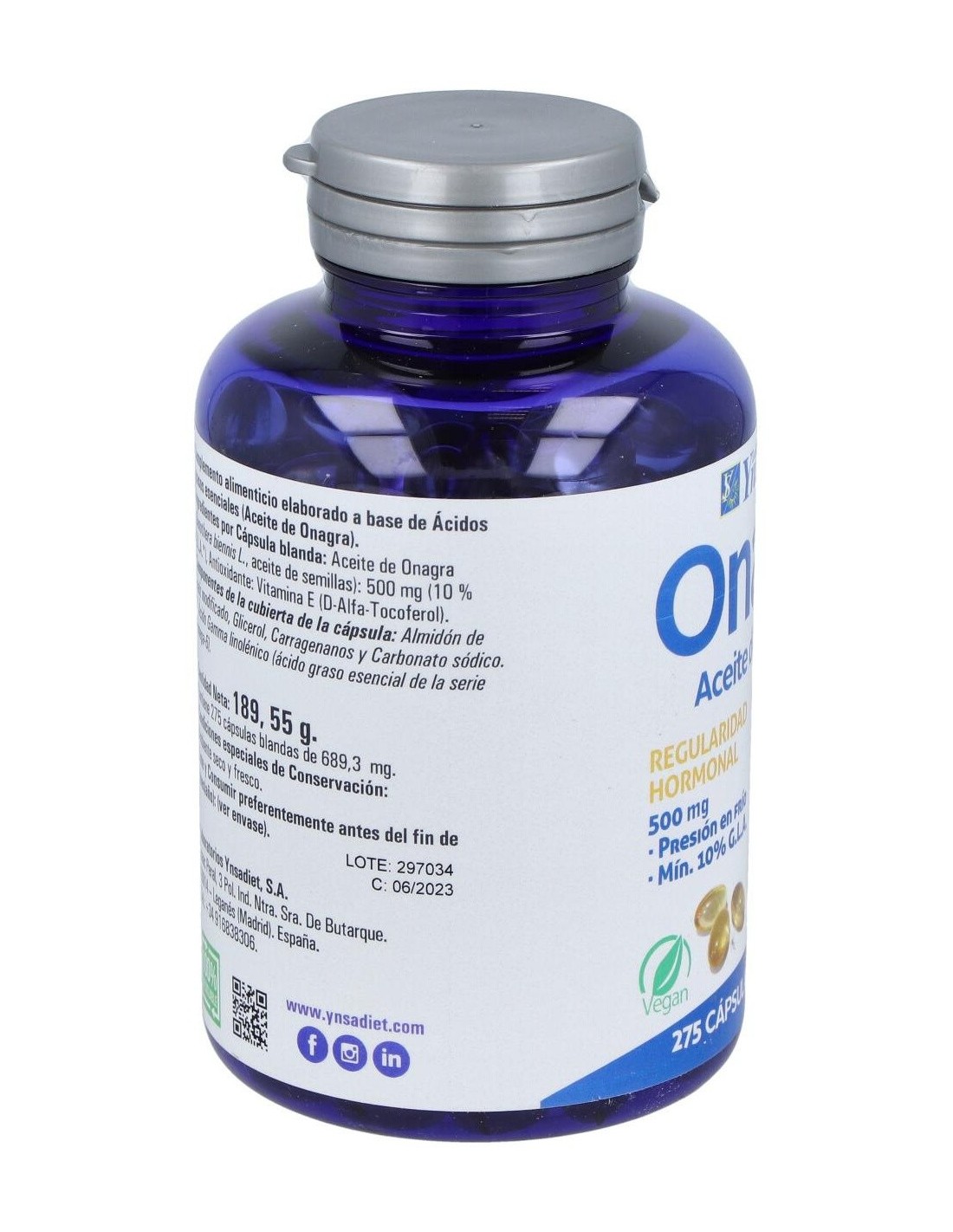 Ynsadiet onagra vegetal 275 perlas es un complemento alimenticio rico en Omega-6, que es un ácido graso esencial que favorece la síntesis de prostaglandinas. Las prostaglandinas son sustancias que ayudan a regular el ciclo menstrual de las mujeres. Además, ayudan a normalizar los niveles de presión arterial.