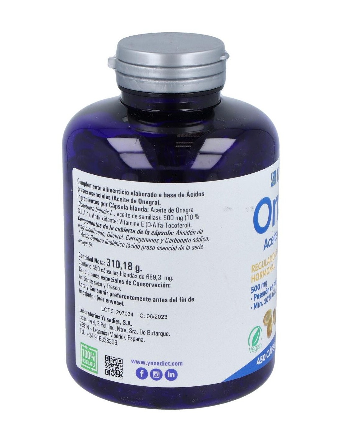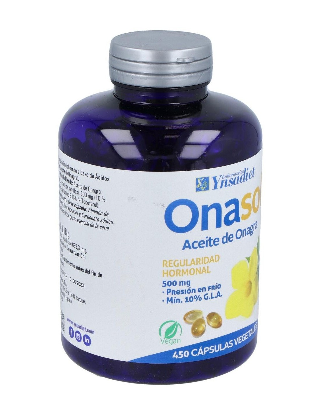 Onasol Vegetal 450 Perlas. V de Ynsadiet es un complemento alimenticio diseñado para personas que buscan apoyar su bienestar diario mediante ingredientes de origen vegetal. Su formulación está pensada para quienes prefieren opciones naturales dentro de su rutina de cuidado personal.