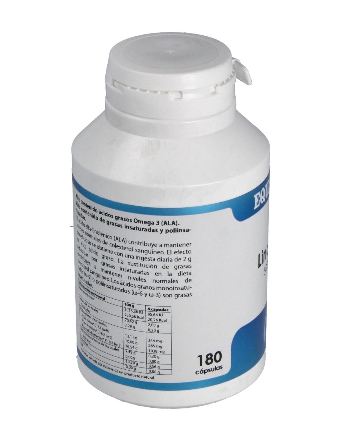 Aceite de Lino y Vitamina E. Envoltura vegetal, Gelatina, Glicerina.