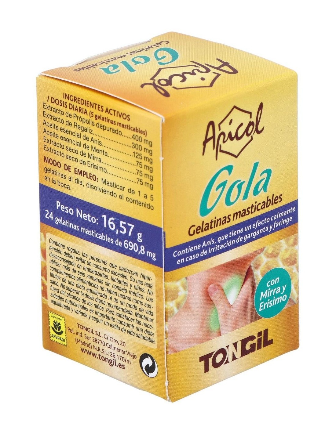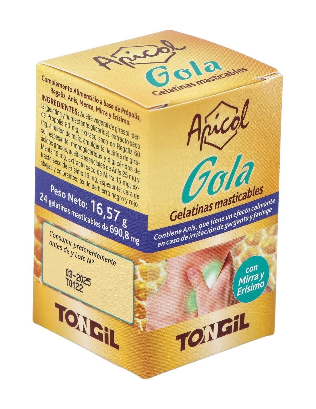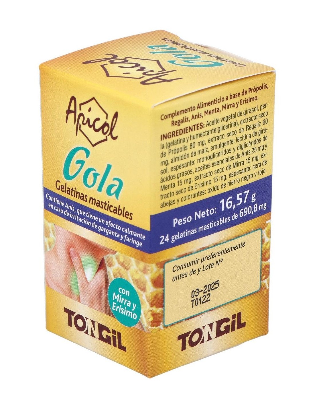 Apicol (Aligel) Gola Plus 24Perlas de Tongil es un complemento diseñado para personas que buscan apoyo en el cuidado de la garganta de manera práctica y cómoda. Su formato en perlas facilita su consumo en cualquier momento del día.