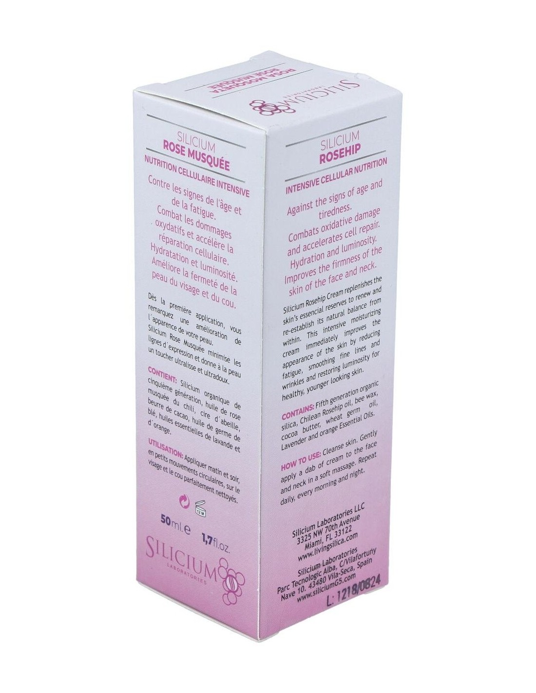 Con silicio orgánico G5, aceite de rosa mosqueta de chile, cera de abeja, manteca de cacao, aceite de germen de trigo, aceites esenciales de lavanda y de naranja. Aporta nutrición celular, hidratación, firmeza y luminosidad.