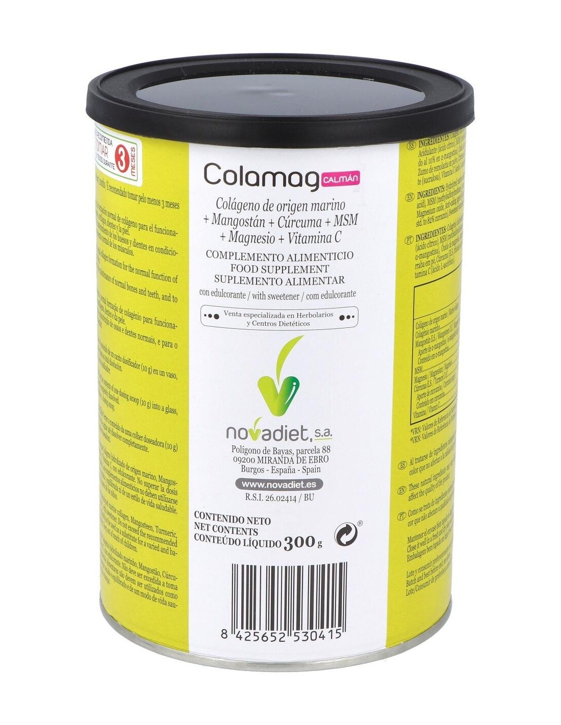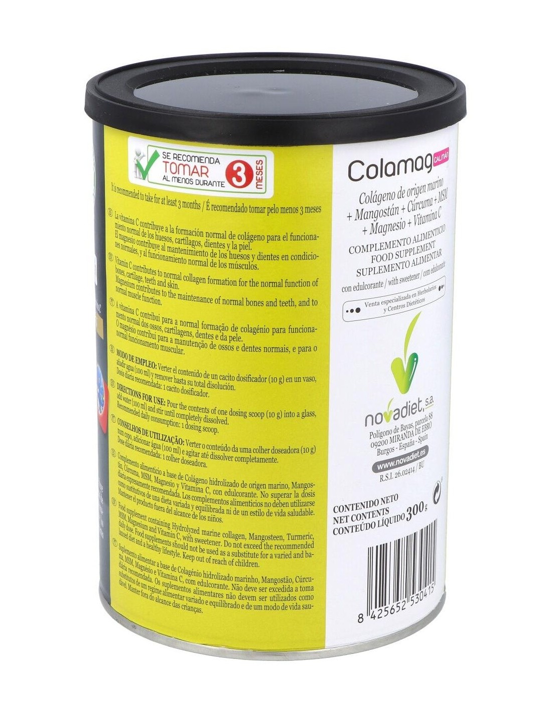 Colamag Calmán Envase de 300 g. de Novadiet es un complemento alimenticio diseñado para personas que buscan apoyar su bienestar diario mediante ingredientes seleccionados. Su formulación está pensada para integrarse fácilmente en rutinas de cuidado personal, aportando una opción práctica y dosificada.