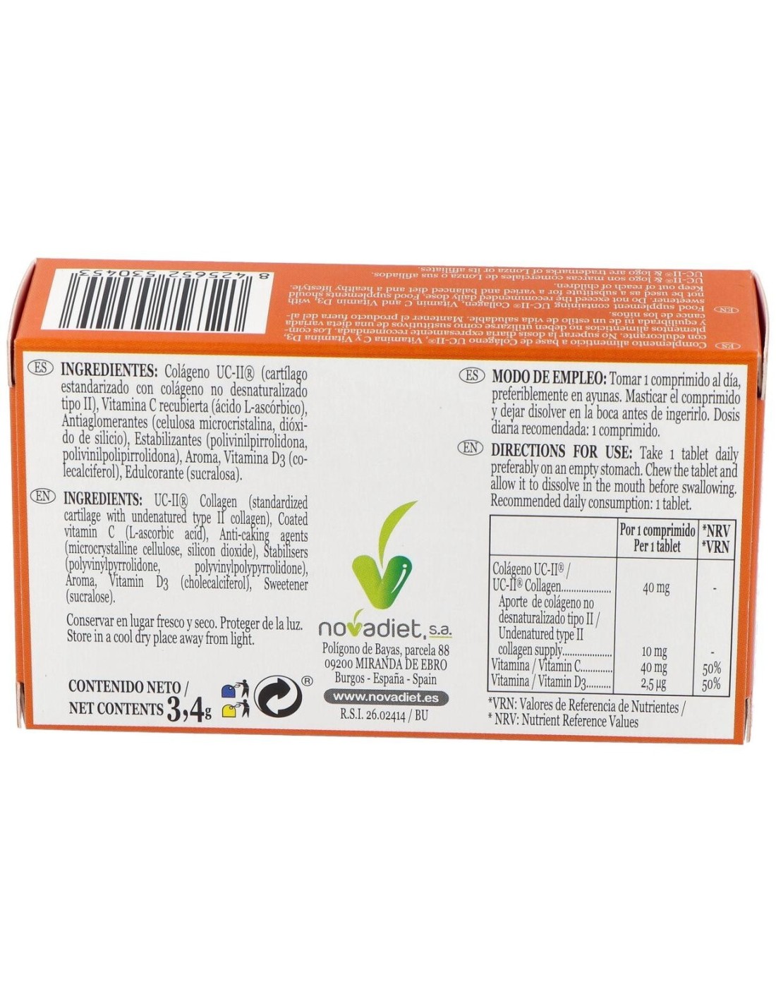 Colamag Flas Novadiet 30comp es un complemento alimenticio que ayuda a proteger las articulaciones y contribuye a regenerar el cartílago articular. Contiene colágeno UC-II®, que ayuda a regenerar el cartílago articular dañado y contribuye a la formación de huesos, tendones y ligamentos.