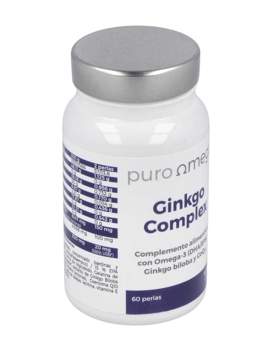 Ginkgo Complex Dha/Epa Q10 - 60 Perlas de Puro Omega es un suplemento diseñado para personas interesadas en complementar su dieta con ácidos grasos esenciales y coenzima Q10. Este producto está orientado a quienes buscan apoyar su bienestar general mediante ingredientes cuidadosamente seleccionados.