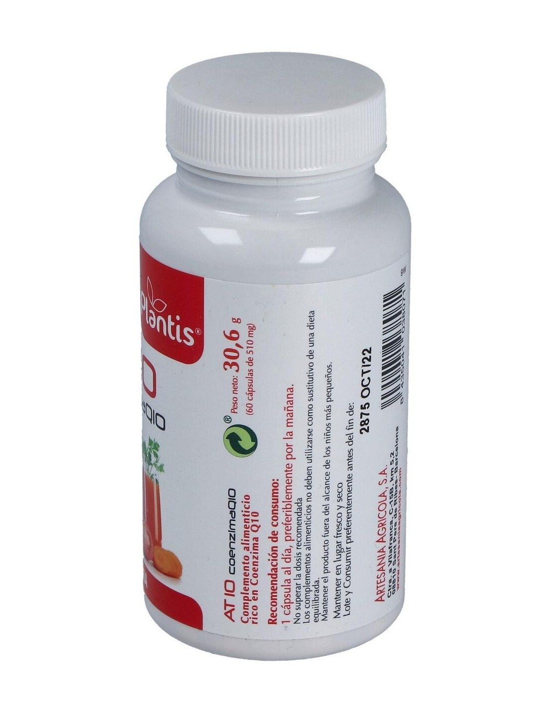 At10 Coenzima Q10 Plantis60Cap de Artesania ofrece una opción práctica para quienes desean complementar su alimentación con coenzima Q10, contribuyendo al mantenimiento de sus niveles energéticos de forma sencilla.