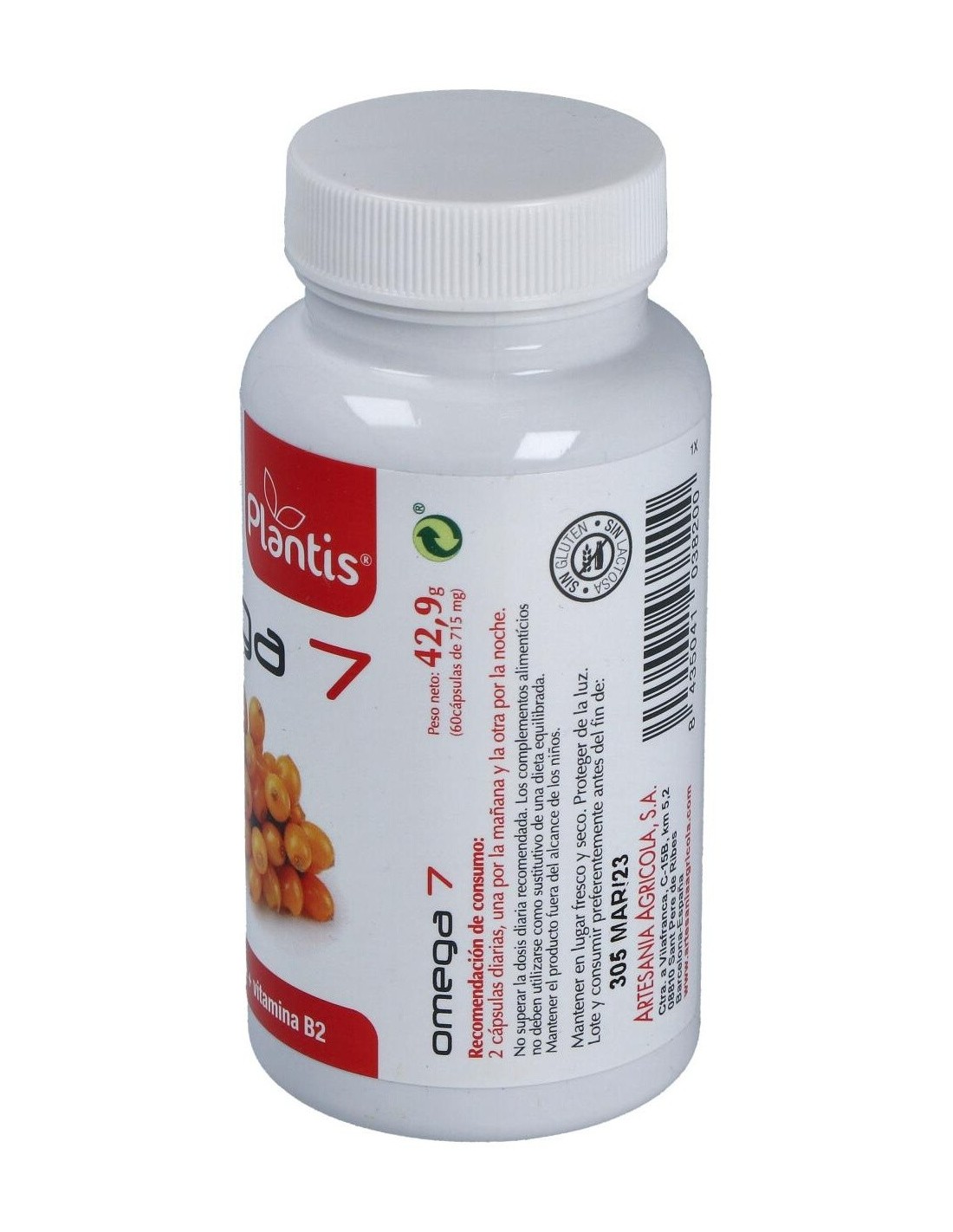 El Omega -7 Plantis 60 Cap. de Artesania es un suplemento natural dirigido a personas que buscan apoyar su bienestar general, formulado con ingredientes que aportan ácidos grasos Omega-7.