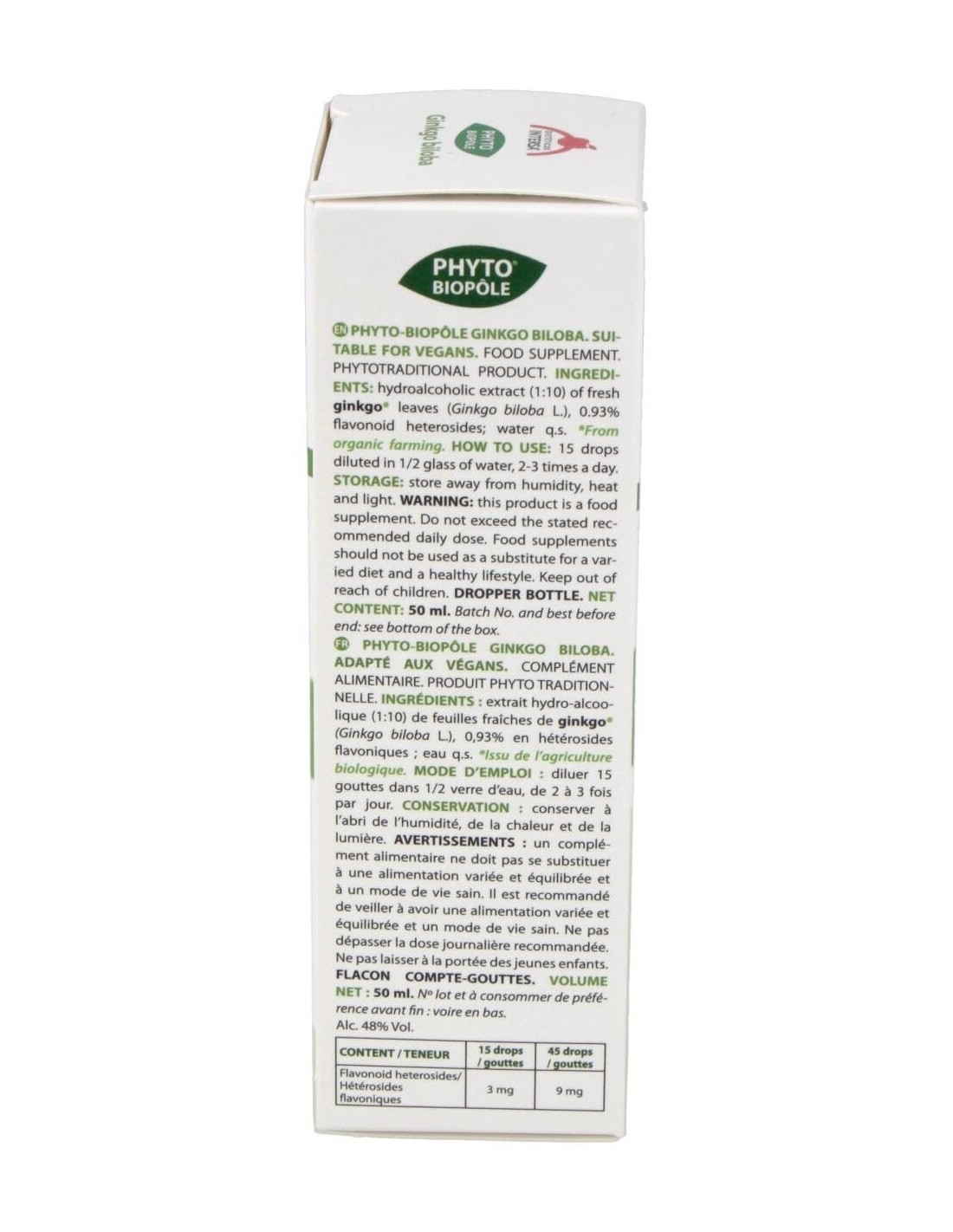 Es un buen venotónico, tonifica las paredes de las venas y facilita el retorno sanguíneo. En cuarto lugar, mejora el riego sanguíneo del cerebro; ha demostrado ser muy útil en alteraciones de la función cerebral de origen insquémico (demencias seniles, falta de atención/concentración). Ingredientes:Extracto hidroalcohólico (1:10) de hojas frescas de ginkgo* (Ginkgo biloba L., 0,93% en heterósidos flavónicos). Modo de empleo:Tomar 15 gotas diluidas en medio vaso de agua de 2 a 3 veces al día (15 gotas equivalen aprox a 0,70 ml). Agitar antes de usar. Presentación:Frasco de 50 ml con cuentagotas.