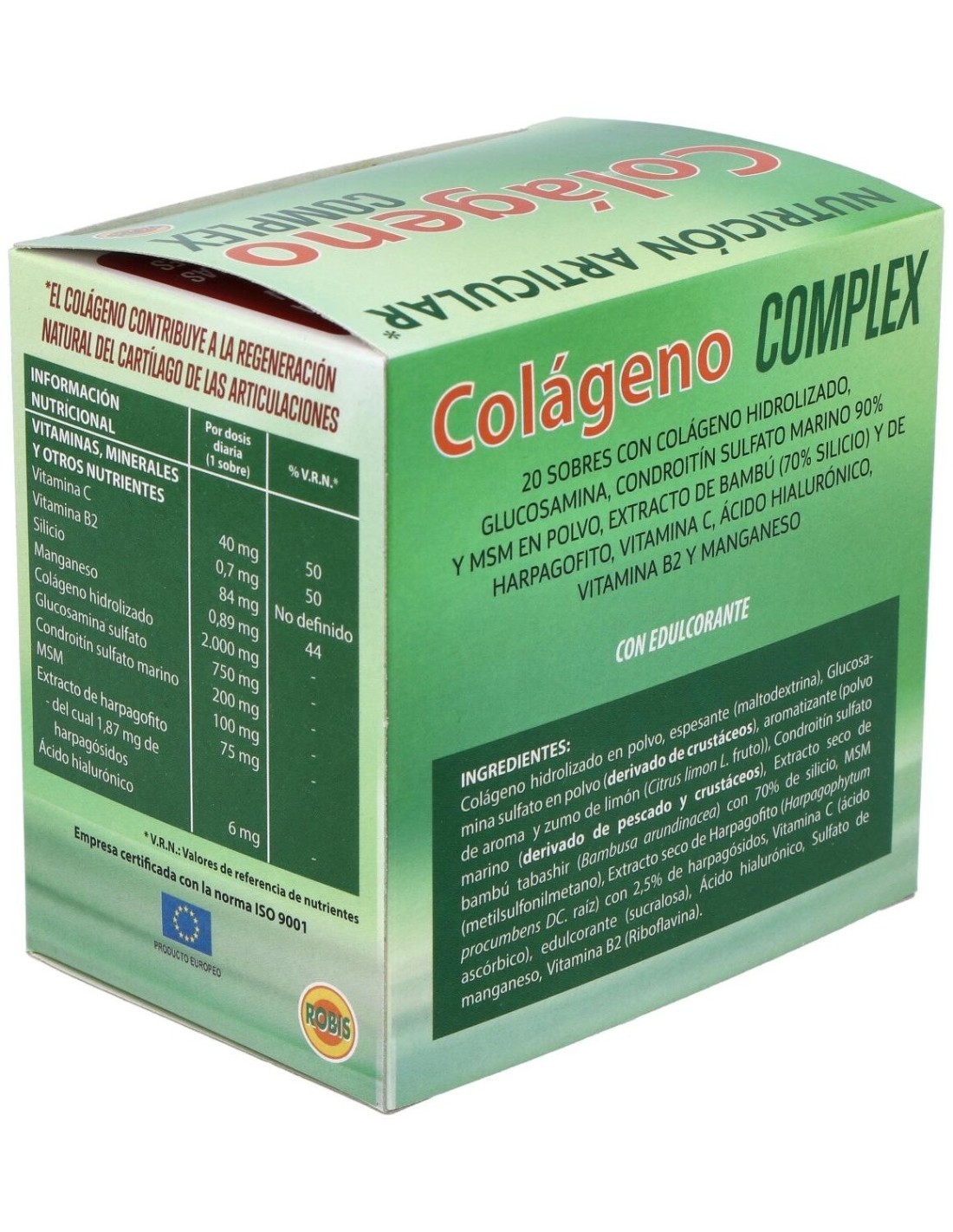 El Colageno Complex 20Sbrs. de Robis es un suplemento nutricional dirigido a personas que buscan apoyar la salud articular y de la piel, formulado con colágeno y nutrientes clave para favorecer su mantenimiento.