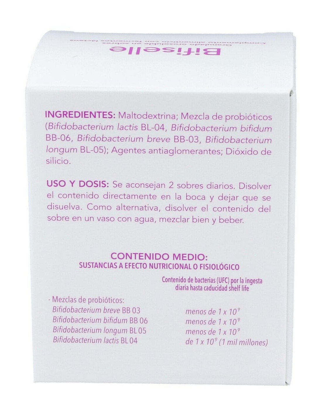 Bifiselle es un probiótico del laboratorio Bromatech, que en su formulación contiene 4 cepas diferentes de bifidobacterias. El género de las bifidobac