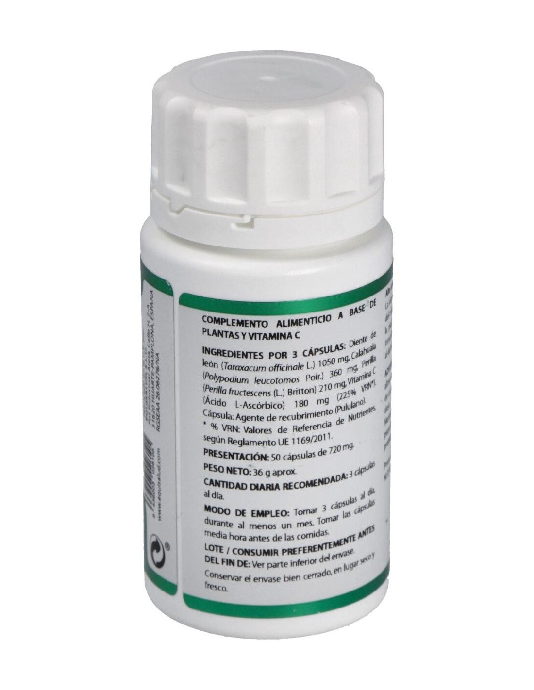 Modo de empleo:Tomar 3 cápsulas al día media hora antes de las principales comidas.Presentación:Envase de 50 cápsulas.