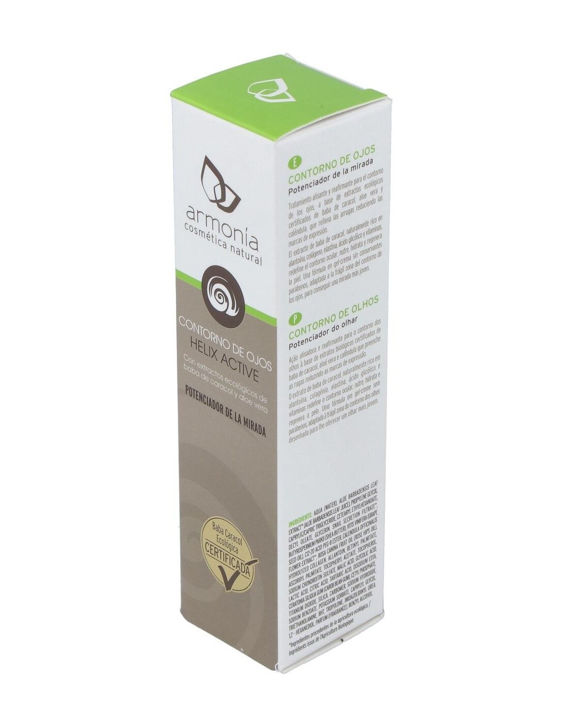 El Helix Active Eco Contorno De Ojos Caracol Bio 15Ml de Armonia es un tratamiento facial para personas que buscan cuidado natural. Ayuda a hidratar y revitalizar la piel del contorno de ojos mediante extracto bio de caracol.