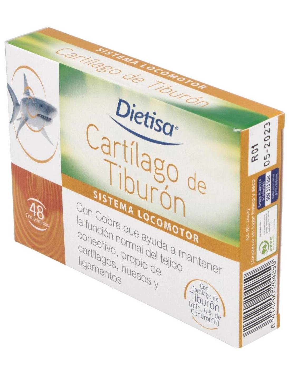 Complemento alimenticio a base de cartílago de tiburón, vitaminas y minerales que ayuda a mantener la función normal del tejido conectivo, propio de cartílagos, huesos y ligamentos. Complemento alimenticio a base de cartílago de tiburón, vitaminas y minerales que ayuda a mantener la función normal del tejido conectivo, propio de cartílagos, huesos y ligamentos.