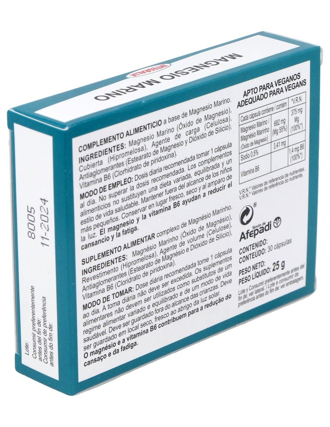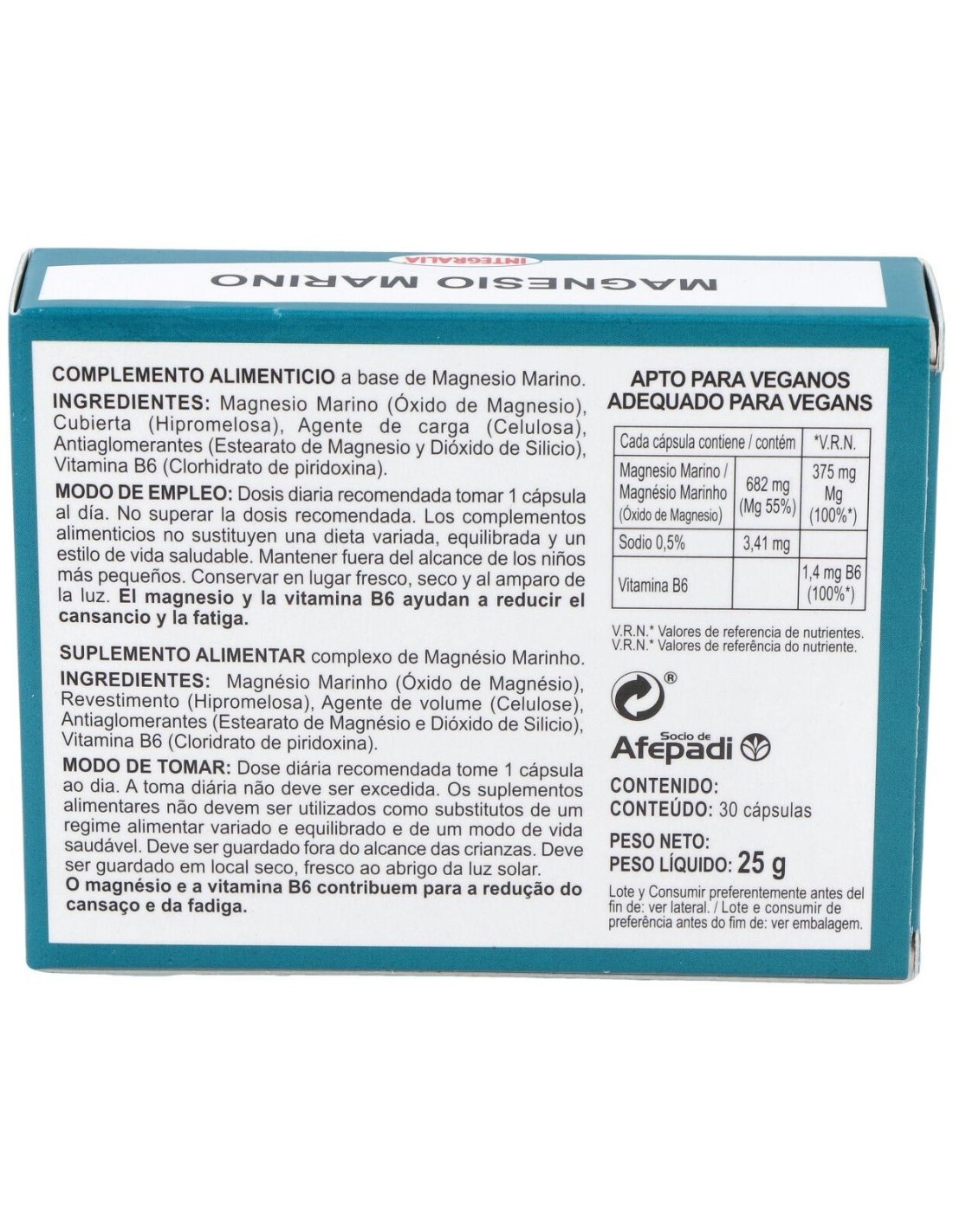 - Contiene magnesio marino, una fuente natural que ayuda a cubrir las necesidades diarias de este mineral.