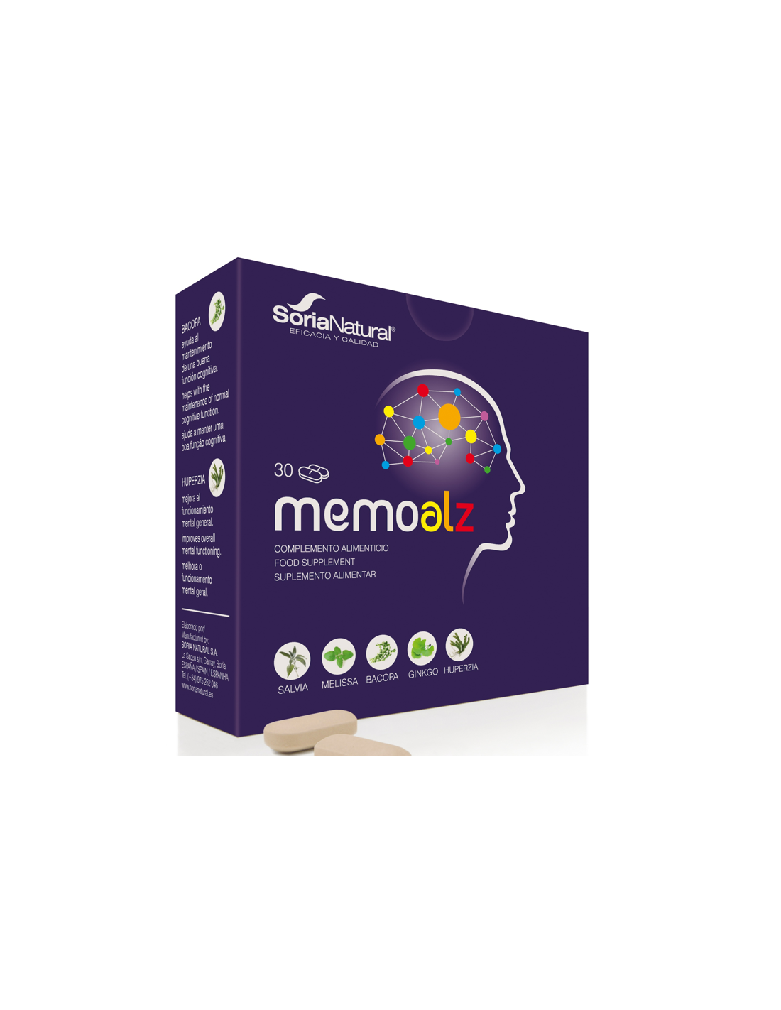 Memoalz 30Comp. de Soria Natural es un complemento alimenticio diseñado para personas que buscan apoyar su bienestar cognitivo y mental de forma natural. Su formulación está pensada para quienes desean mantener un equilibrio en su rutina diaria mediante ingredientes de origen vegetal.