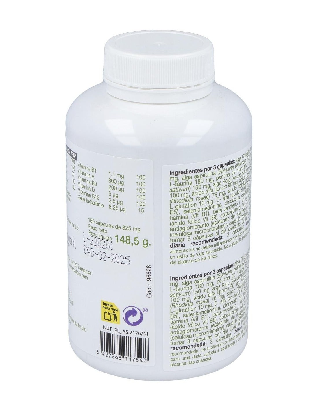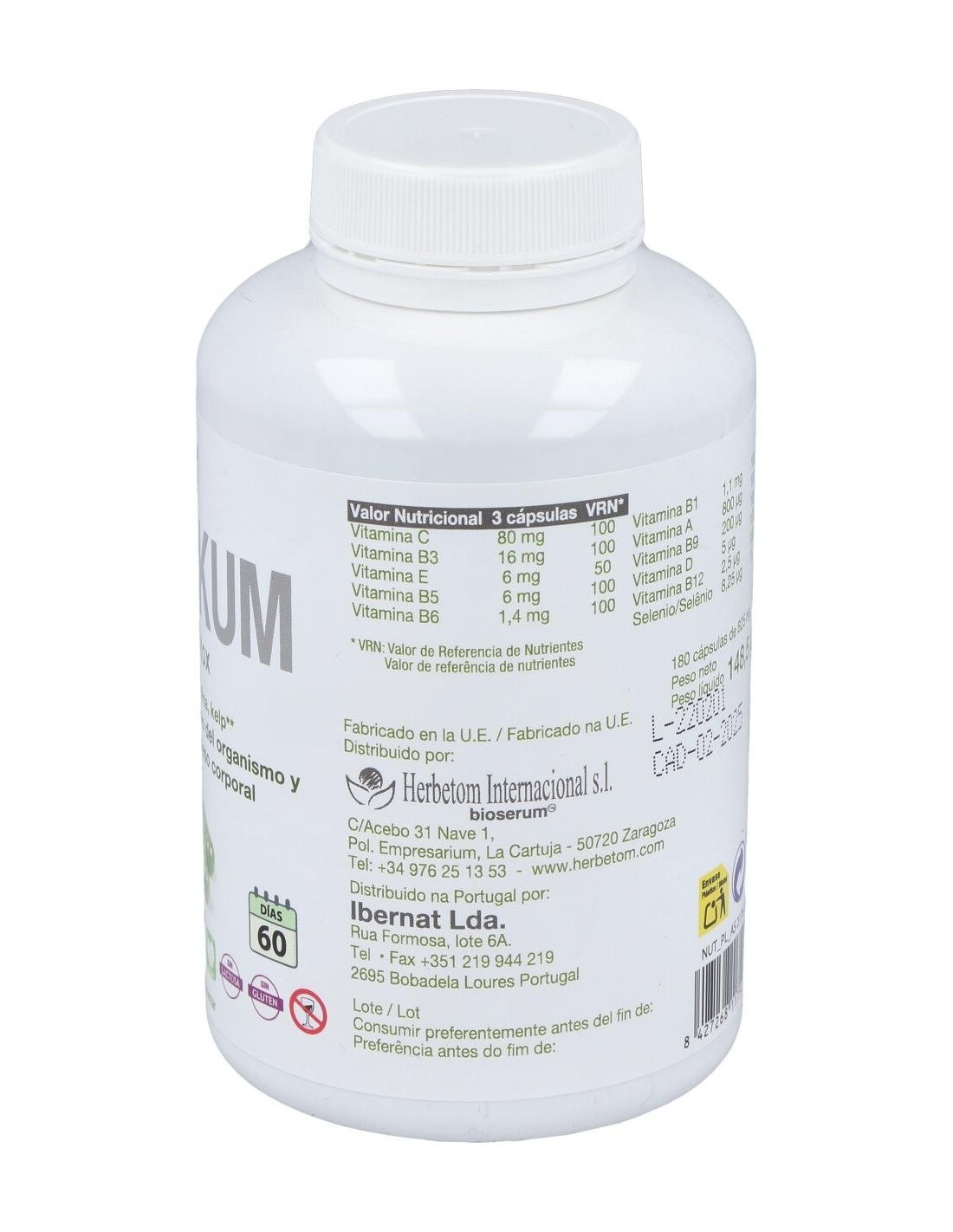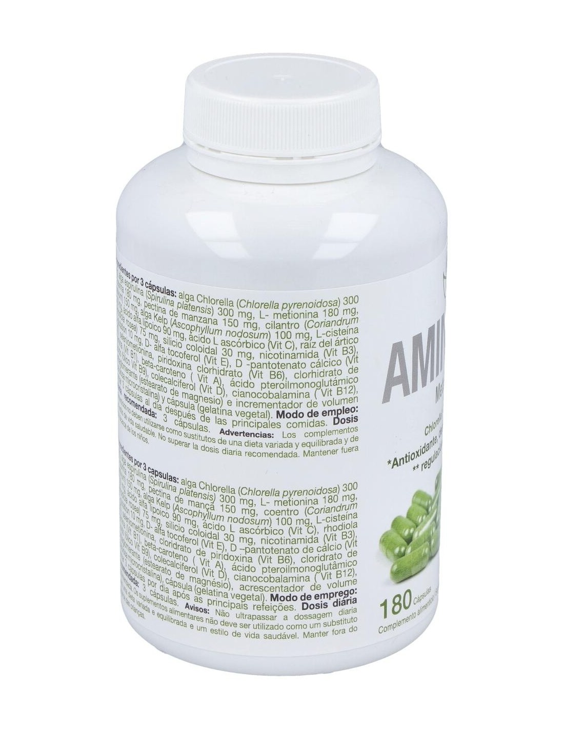 Herbetom Aminikum 180 Cápsulas está formulado con alga chlorella que depura el organismo. También, con alga kelp, que regula el peso corporal.