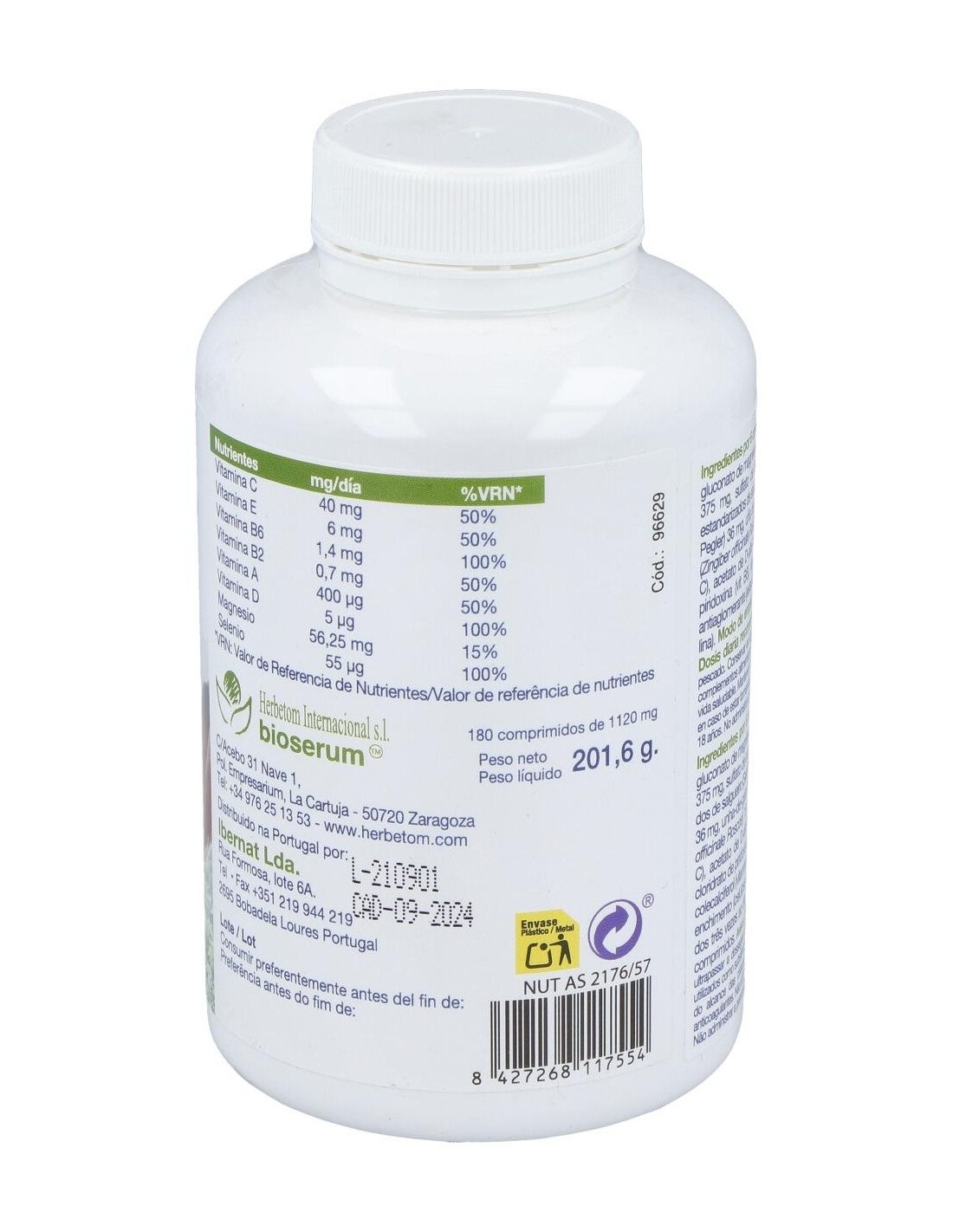 - Presentación en 180 comprimidos que facilita un suministro prolongado y constante.