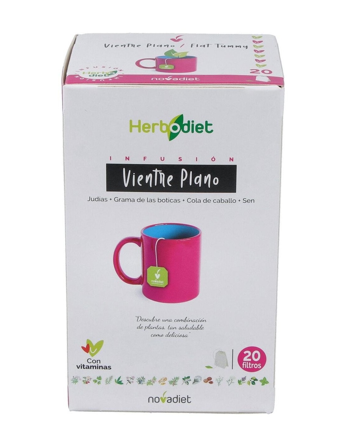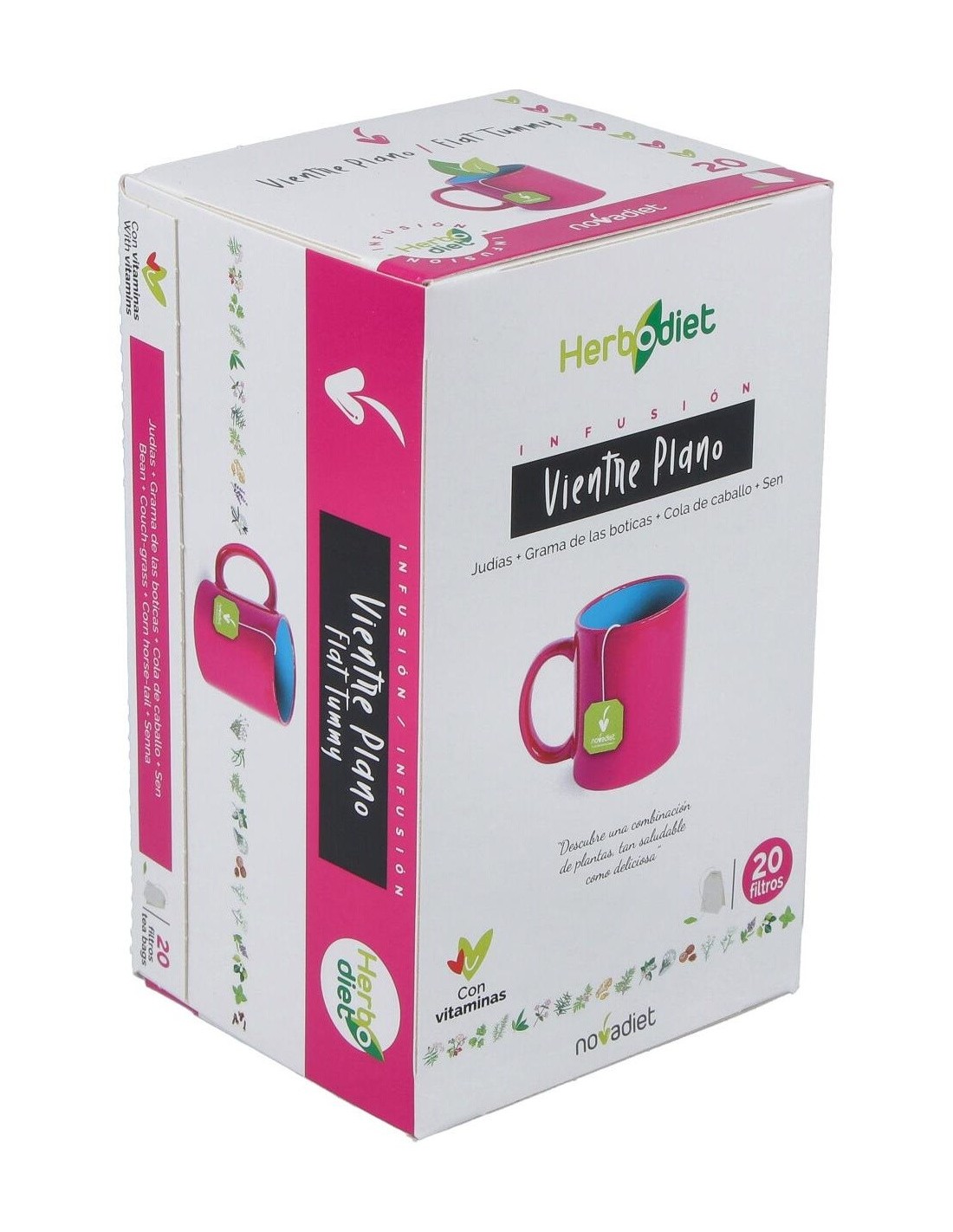 Herbodiet Vientre Plano Envase de 20 bolsitas filtro de 1,5 g de Novadiet es una infusión diseñada para personas que buscan complementar su rutina diaria con una bebida natural que favorece la sensación de ligereza abdominal. Este producto es adecuado para quienes desean incorporar ingredientes de origen vegetal en su dieta de forma práctica y cómoda.