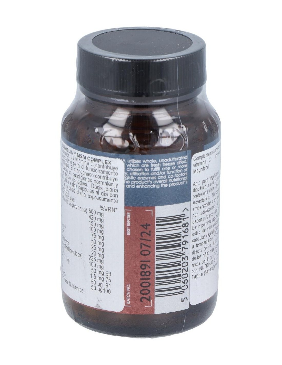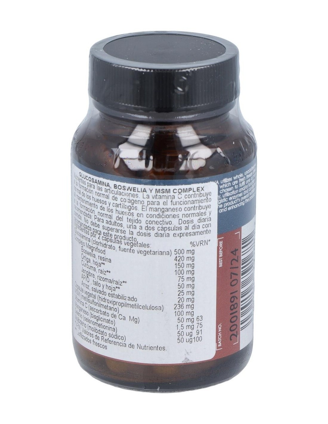 Complemento alimenticio a base de MSM, vitamina C, minerales y plantas del Complejo Magnifood. Contribuye a la formación normal de colágeno para el funcionamiento normal de los huesos y cartílagos. Apto para veganos y vegetarianos.