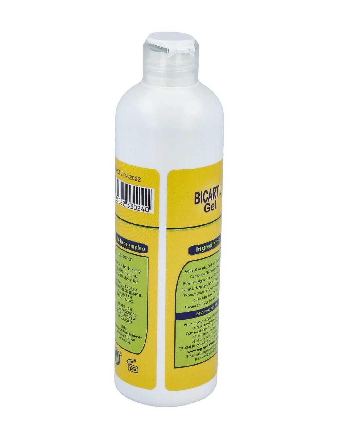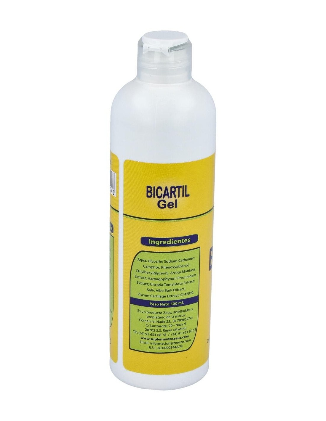 Bicartil Gel elaborado a base de cartílago de tiburón, uña de gato, árnica, harpagofito, sauce y los elementos necesarios para que en forma de gel puede aplicarse directamente sobre las zonas doloridas o afectadas por problemas óseos, musculares, reumáticos y articulares.