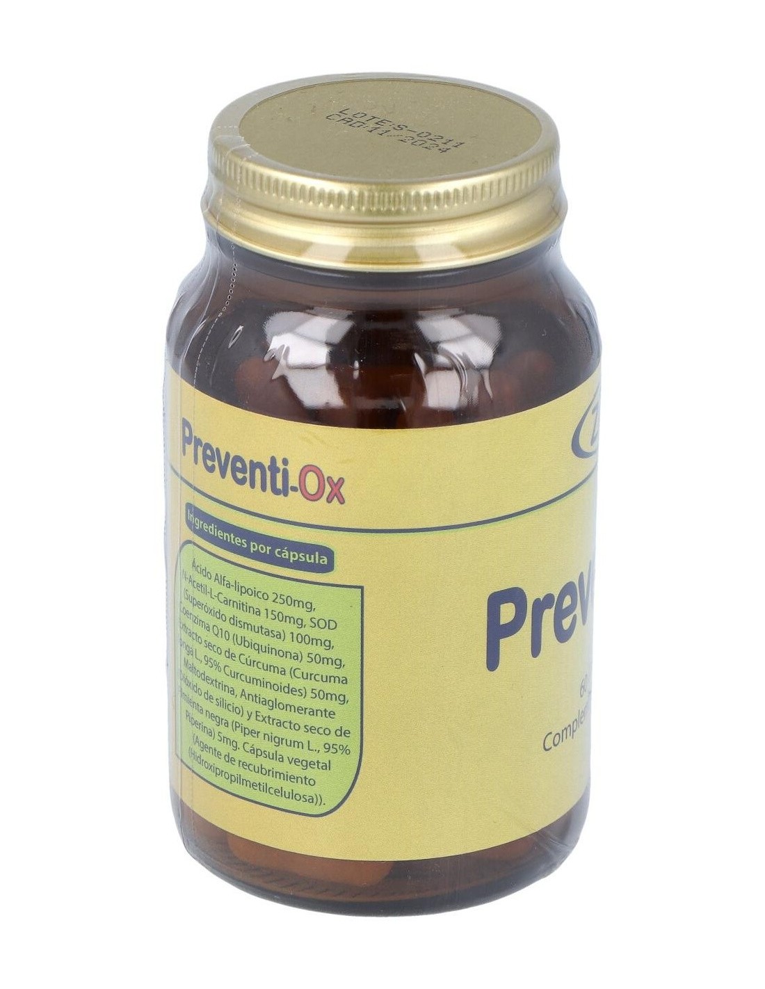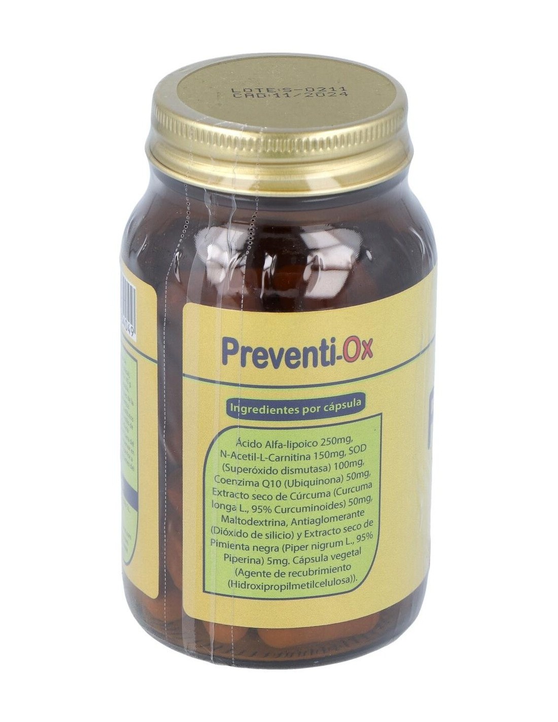 - Acción antioxidante avanzada: Gracias a su fórmula única, Preventi-Ox neutraliza los radicales libres, ayudando a proteger tus células y tejidos del envejecimiento prematuro.