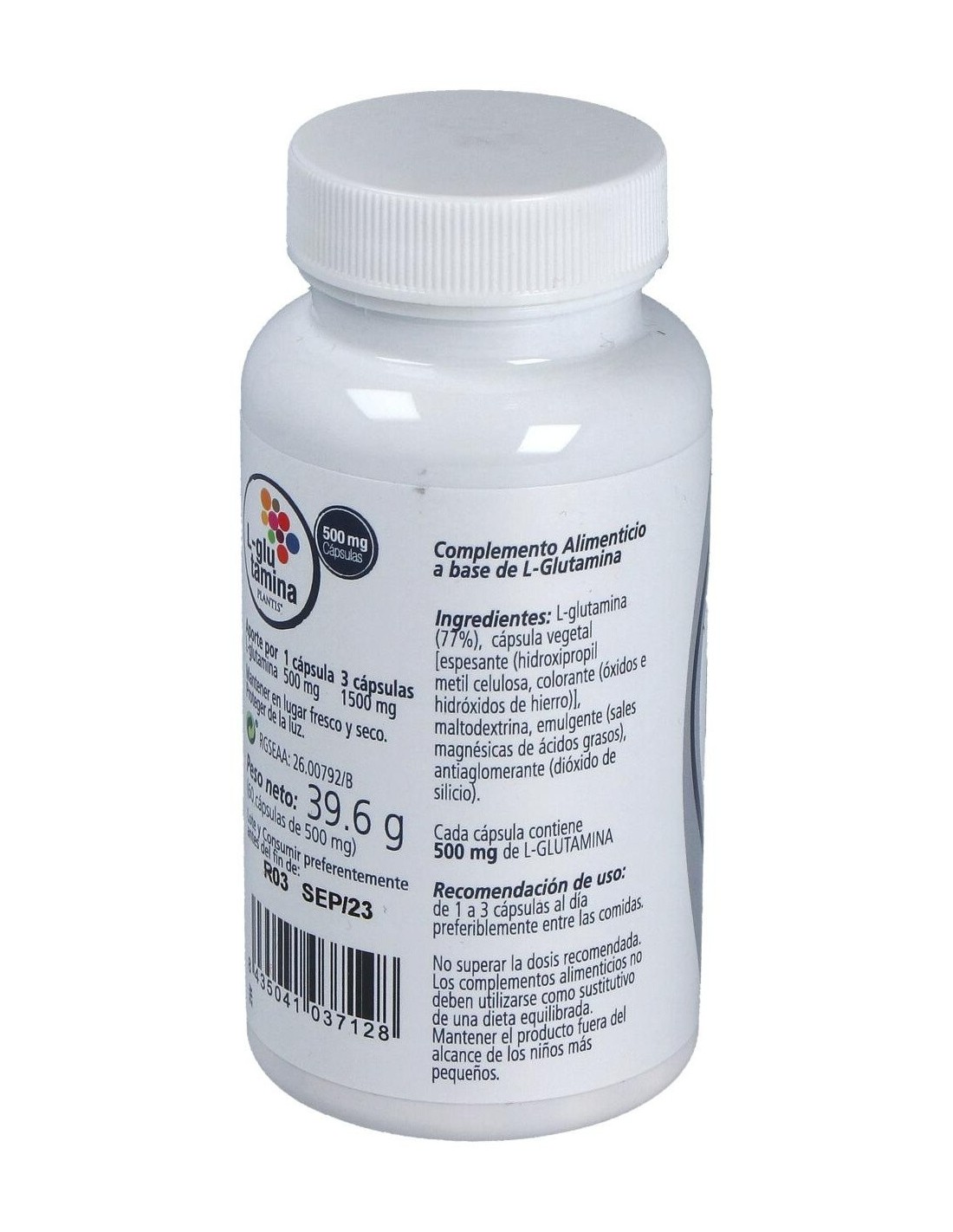 La L-Glutamina es un aminoácido no esencial es decir que puede sintetizarse en el organismo a partir de otros aminoácidos tales como la valina, la isoleucina o el ácido glutámico, sin embargo se le considera un "aminoácido esencial condicionado" o semi-esencial ya que en algunas condiciones (estrés, traumatismo, infección, entrenamiento intenso, etc.) su consumo es superior a su síntesis: el organismo demanda tanta cantidad de glutamina que este no es capaz de sintetizarla en cantidad suficiente.Una suplementación con glutamina favorece la síntesis proteica, previene el catabolismo muscular en situaciones de estrés oxidativo y mantiene o mejora la función inmune.La glutamina utilizada en nuestros productos es de altísima pureza y calidad, está fabricada por Kyowa, empresa líder en el sector biotecnológico.Composición activa por cápsula:500 mg de L-glutamina.Ingredientes:L-glutamina (77%), cápsula vegetal [espesante (hidroxipropil metil celulosa, colorante (óxidos e hidróxidos de hierro)], maltodextrina, emulgente (sales magnésicas de ácidos grasos), antiaglomerante (dióxido de silicio). En cápsula vegetal.Modo de empleo:Tomar de 1 a 3 cápsulas al día preferiblemente entre las comidas.Presentación:Envase de 60 cápsulas.