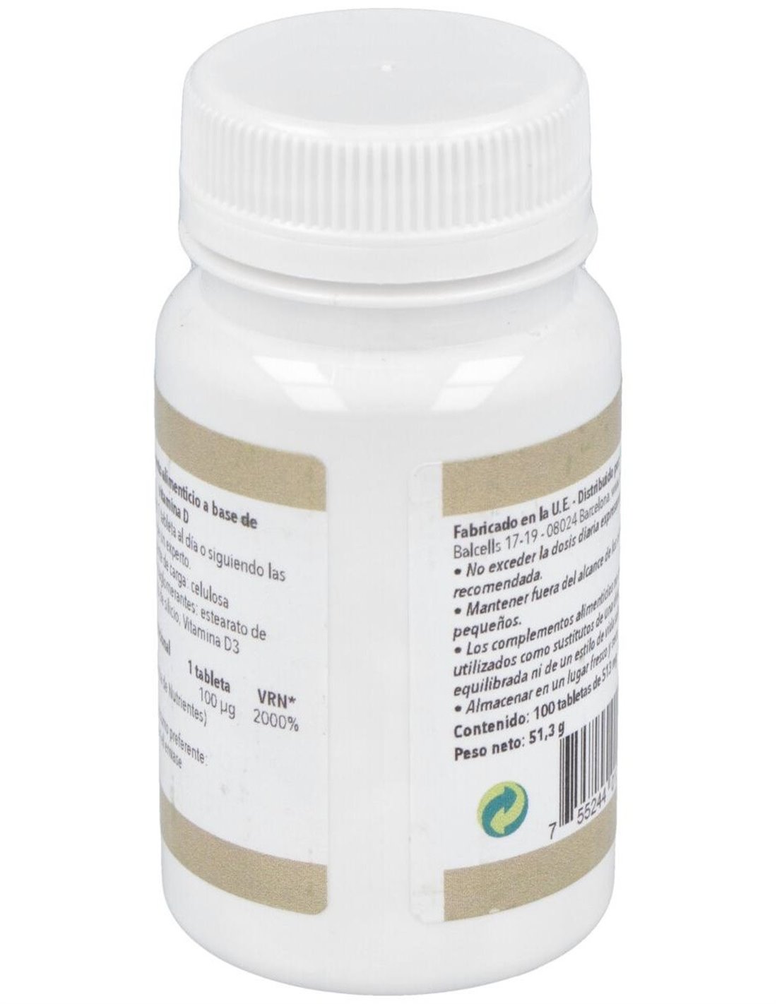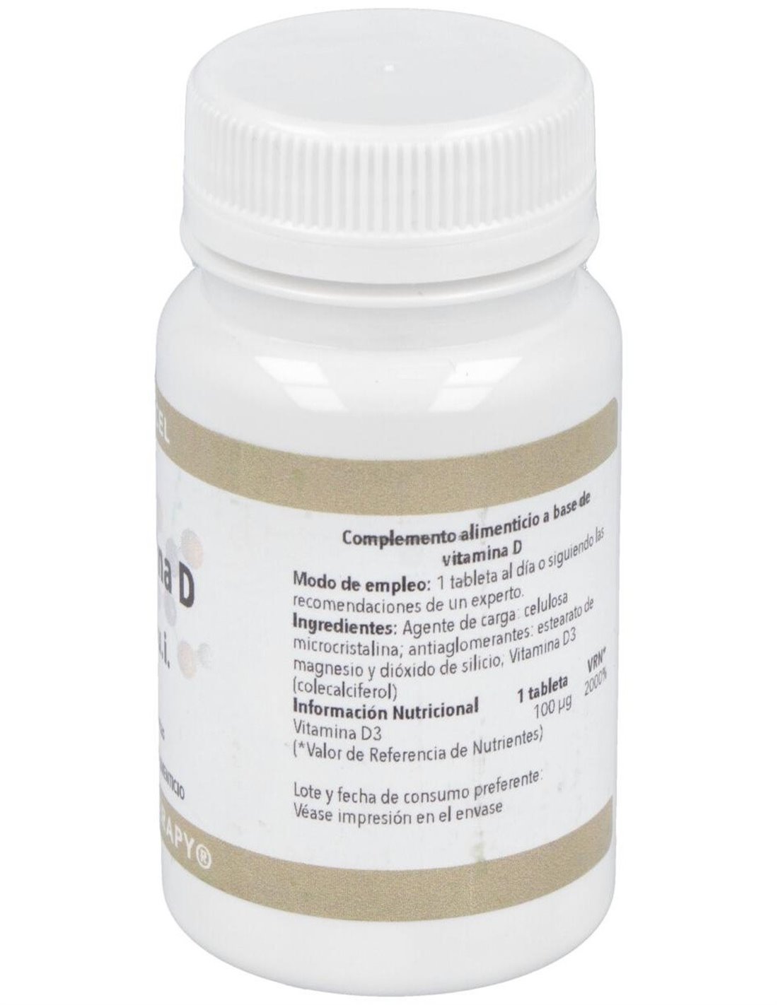Agente de carga: celulosa microcristalina, antiaglomerante: estearato de magnesio y dióxido de silicio, vitamina D3 (colecalciferol) Por 1 comprimido: Vitamina D3..................100 mcg