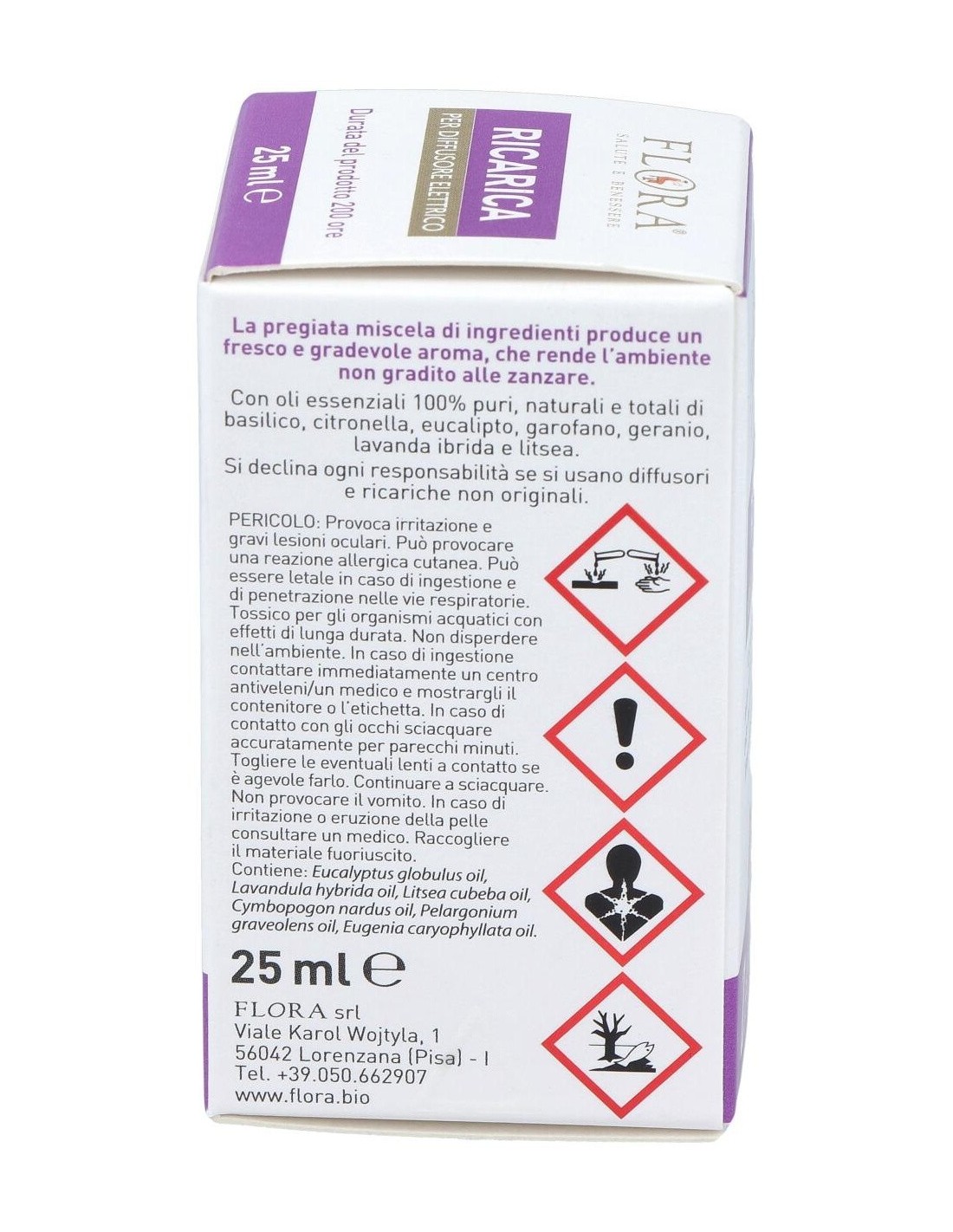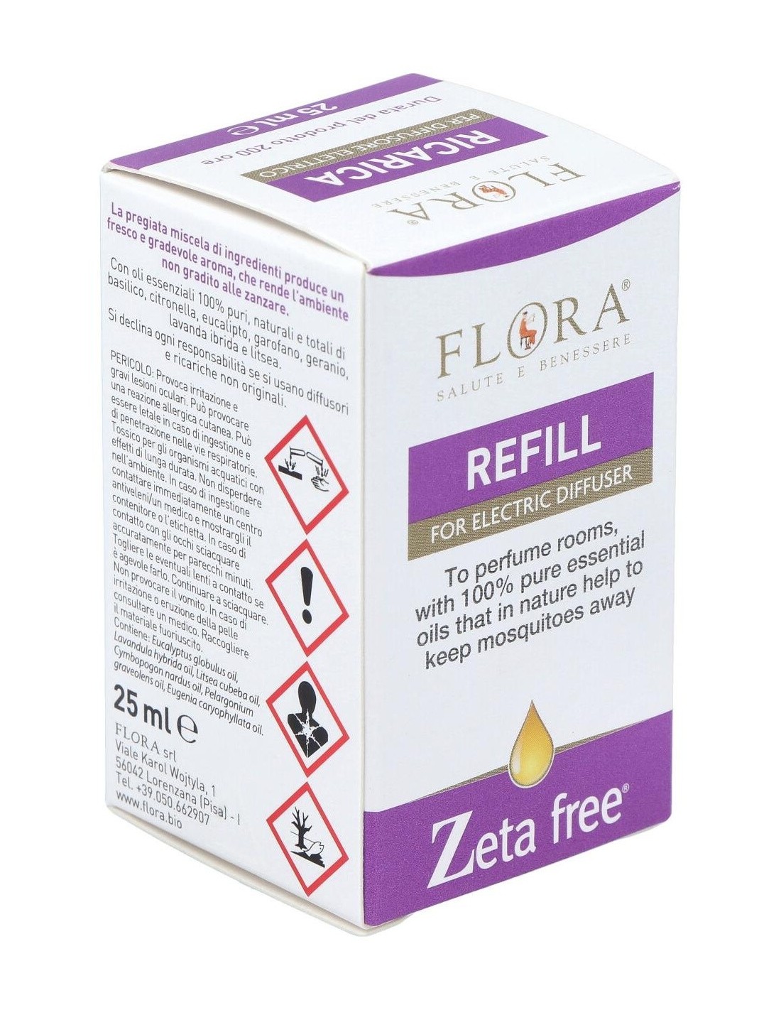 Aceites esenciales 100% puros de Citronella*,, Eucalipto, Geranio, Lavanda**, Basilico, Litsea, Clavo.