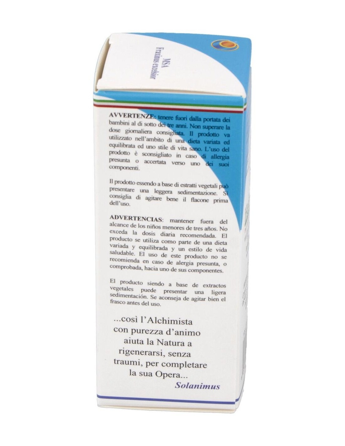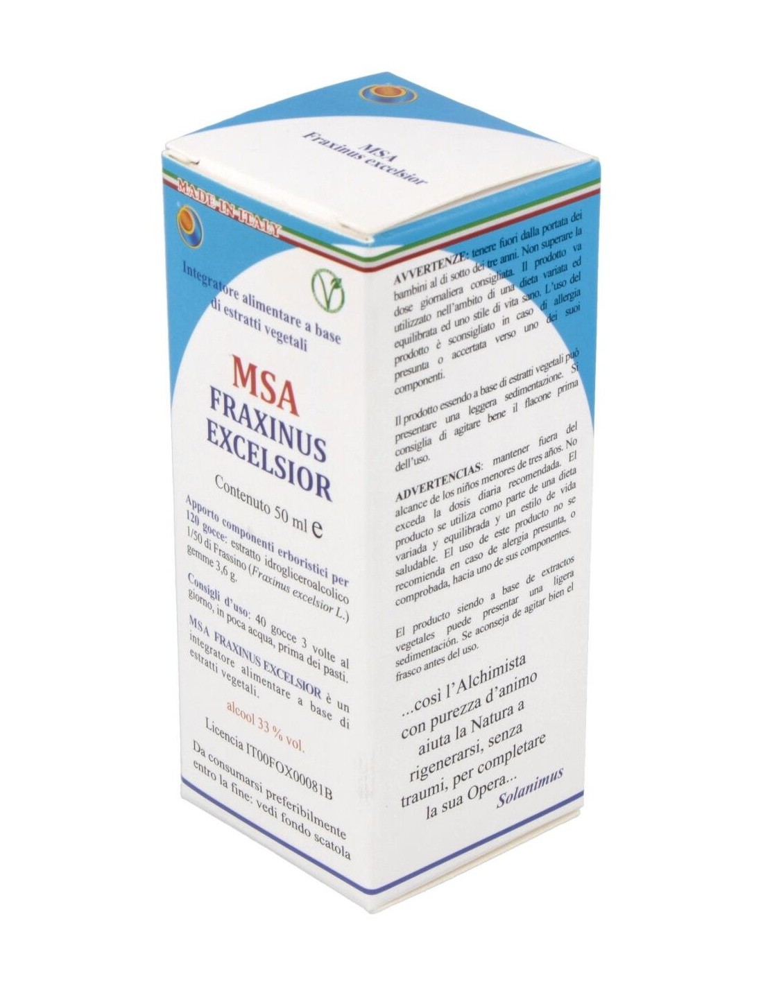 El Macerdo Espagírico-Alquímico de Fraxinus Excelsior es uno de aquellos de la inflamación exudativa (Pol Henry). Adecuado en la gota y en los reumatismos crónicos, así como en el reumatismo articular agudo, ya que tiene una fuerte acción diurética y uricosurica, es decir, que acelera la excreción de ácido úrico, por esta razón es recomendado, con buen éxito, en los estados gotosos. Sus propiedades ya eran conocidas por Hipócrates, Teofrasto y Dodonnes. De la planta, en fitoterapia, se utiliza también la corteza que tendria acción antipirética y astringente.Síntesis Psíquica: El tipo Fraxinus es un hombre alto (a veces muy alto), cimbreño y con los pies grandes que lo sujetan firmemente al suelo. Intenta de crear el vacío a alrededor sí mismo para que pueda sobresalir majestuosamente. Confraterniza de buen grado con el tipo Fagus y Carpinus no desdeña las de tipo Abies. Le gusta el fresco y tiene buena resistencia a el frío, pero no tiene una verdadera intolerancia durante cortos períodos de calor.Ingredientes por 120 gotas:Solución hidro-gliceroalcohólica Espagirica con una relación de extracción de 1:50 (R.E. 1/50) de Fresno común (Fraxinus excelsior L.) yemas 3,6 g.Modo de empleo:Tomar 25-40 gotas en un poco de agua, 3 veces al día.Presentación:Envase de 50 ml.