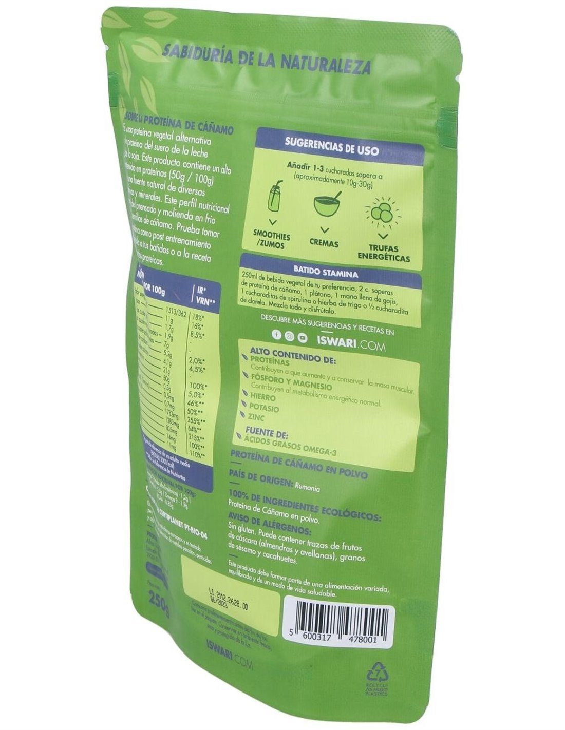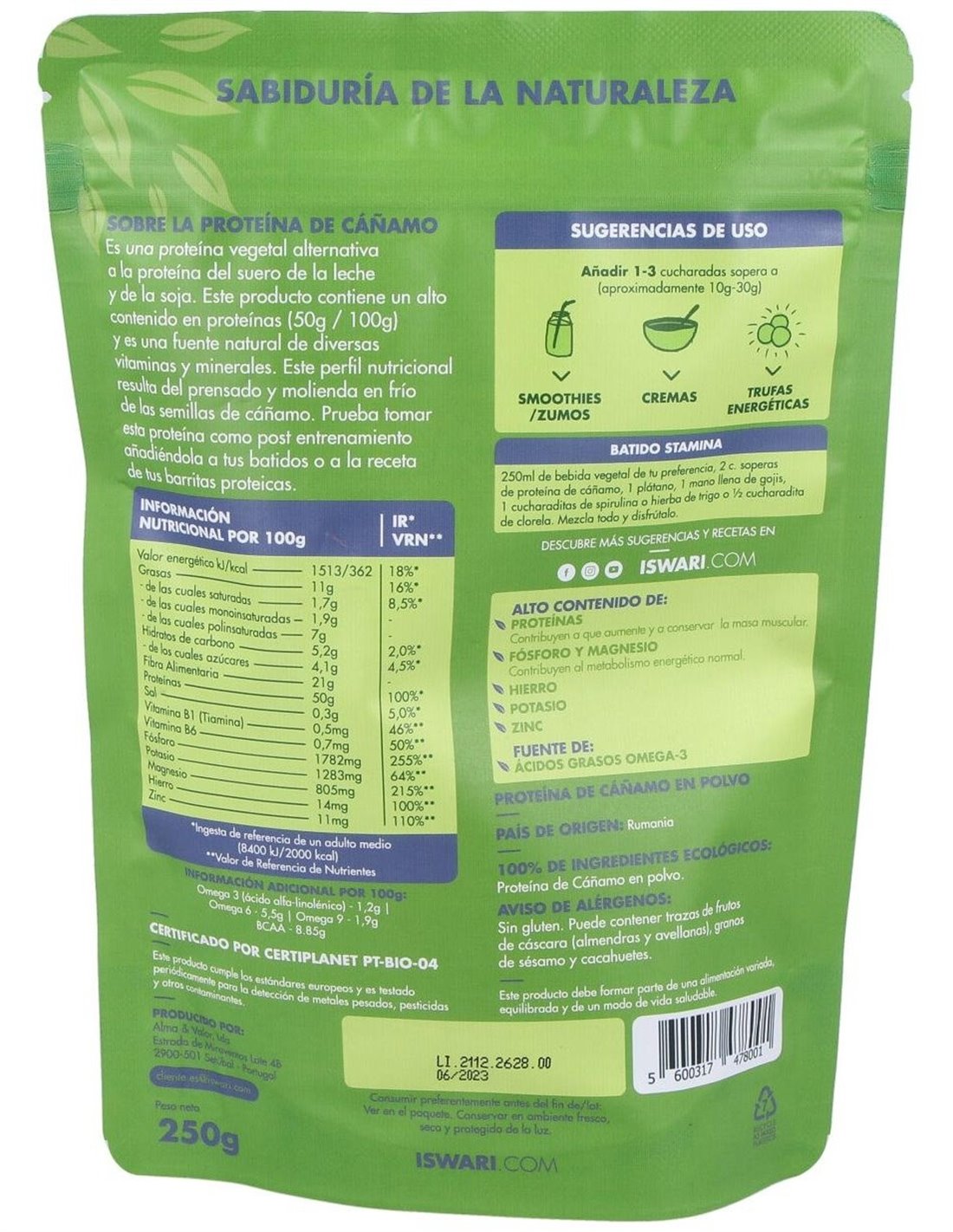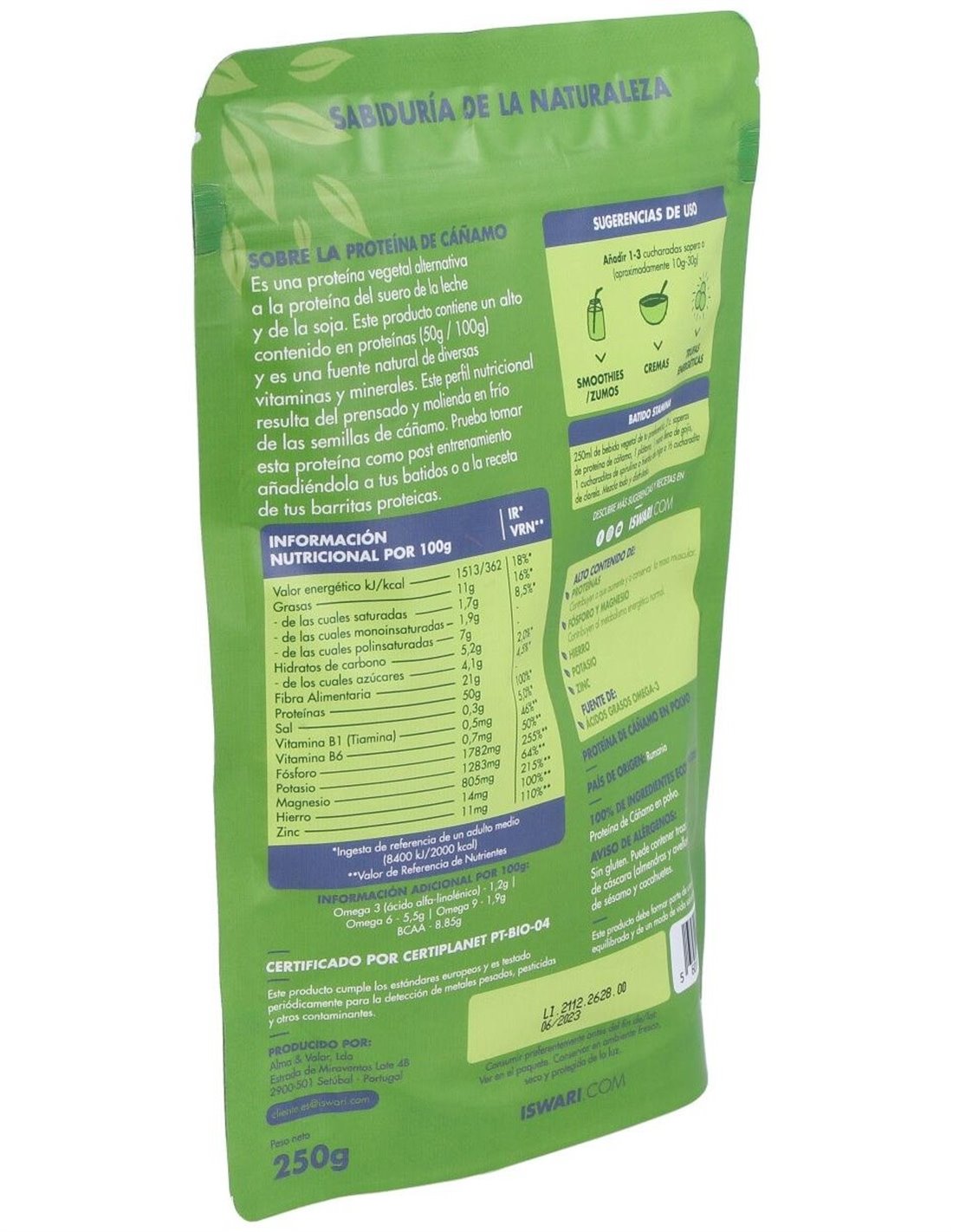 Proteína De Cáñamo Bio 250G Es 250G de Iswari