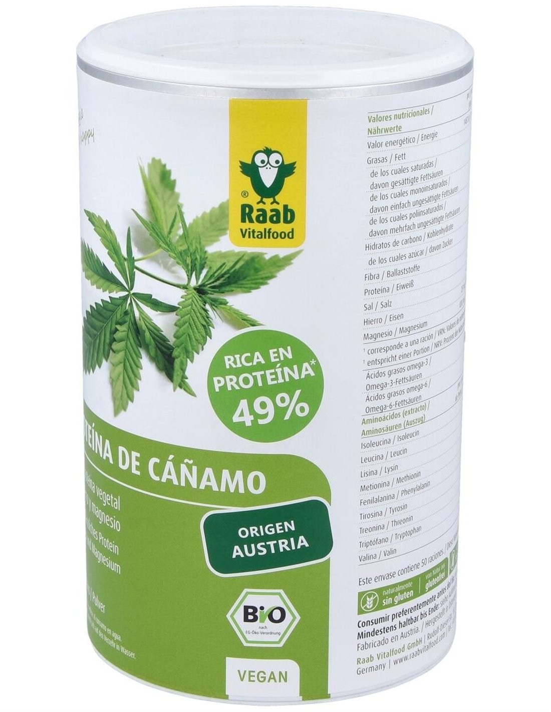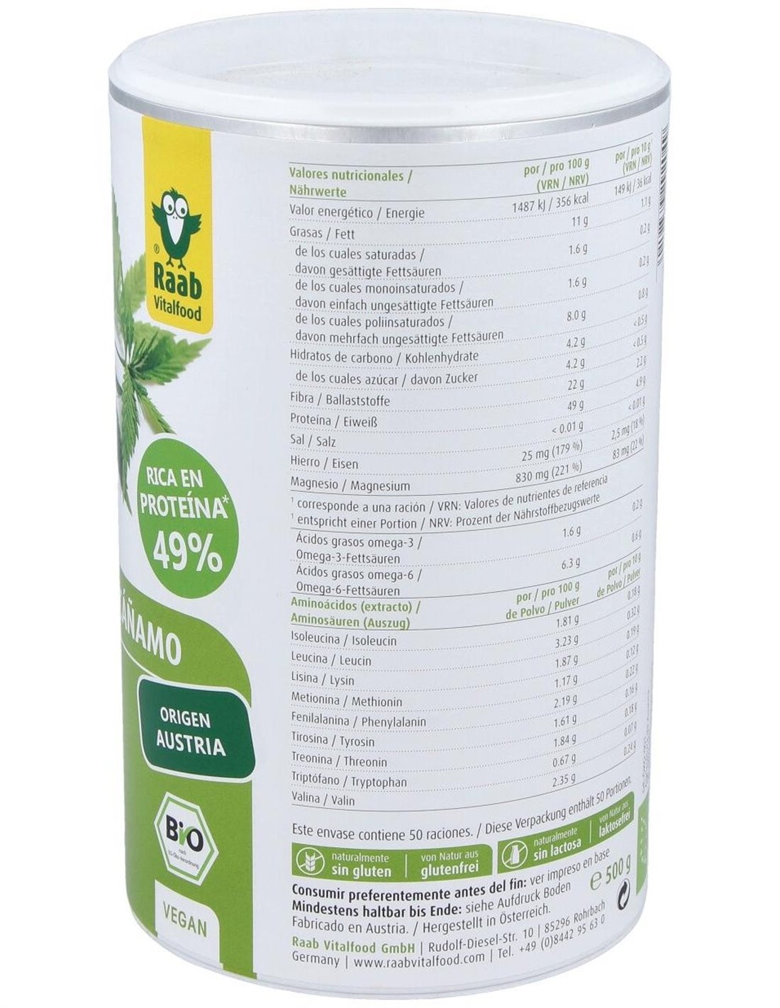 Proteína de cáñamo bio en polvo, 500g RF de Raab Vitalfood