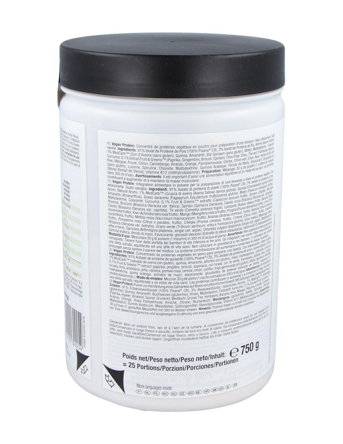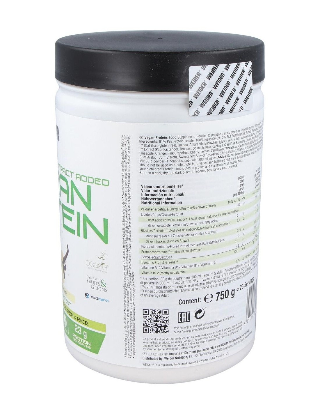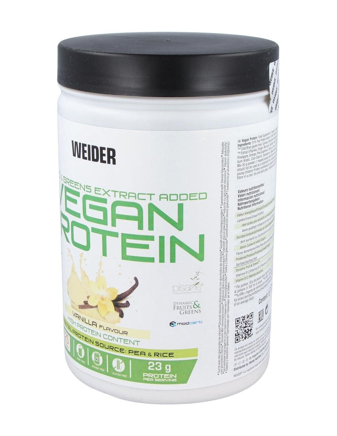 La composición de Weider Vegan Protein incluye proteínas derivadas de fuentes vegetales seleccionadas para ofrecer un perfil nutricional equilibrado. Su diseño está pensado para integrarse fácilmente en rutinas de alimentación saludable, apoyando estilos de vida activos y conscientes.