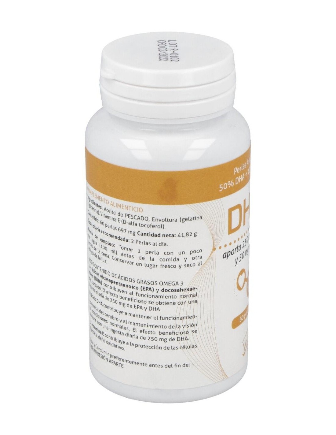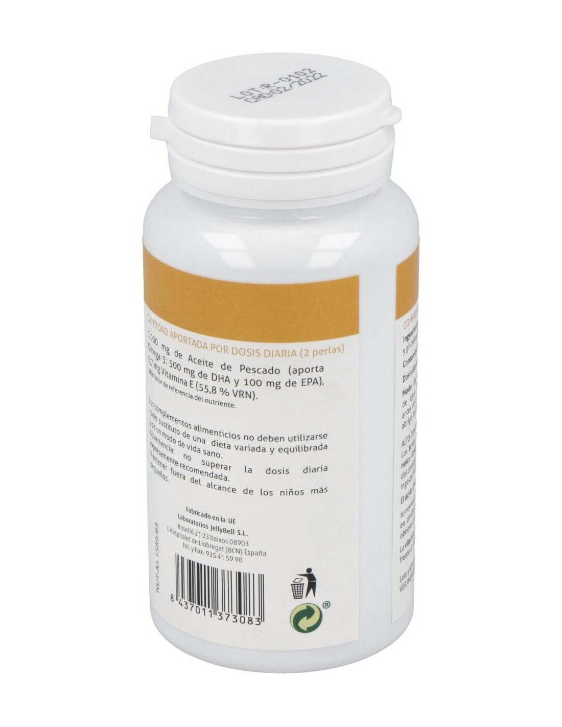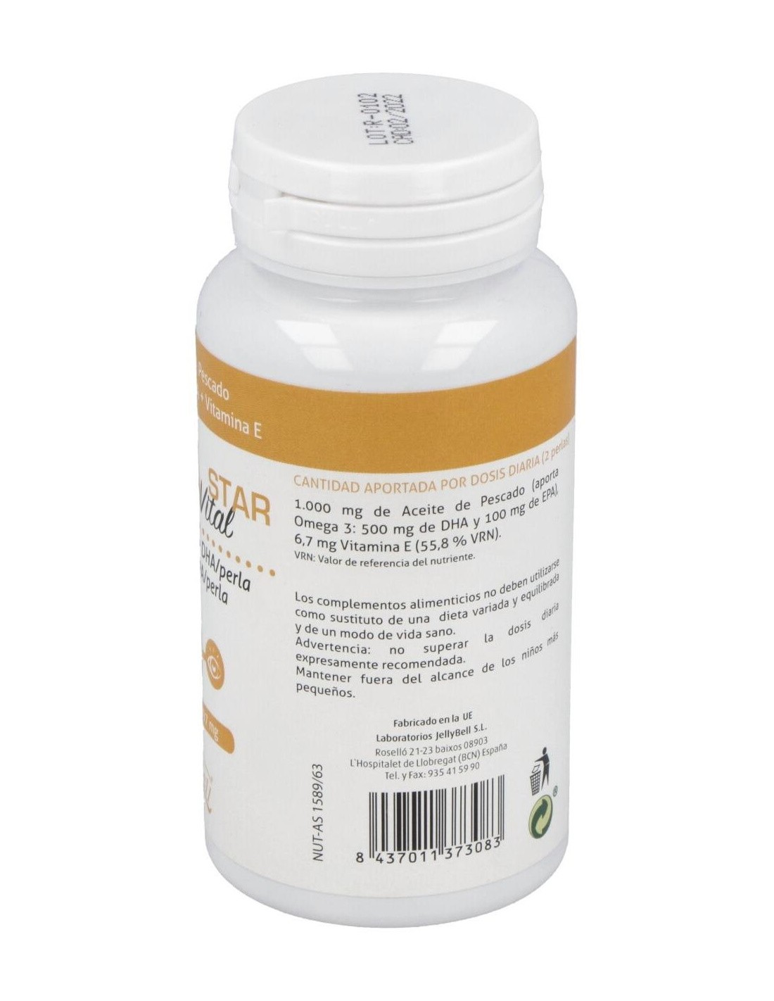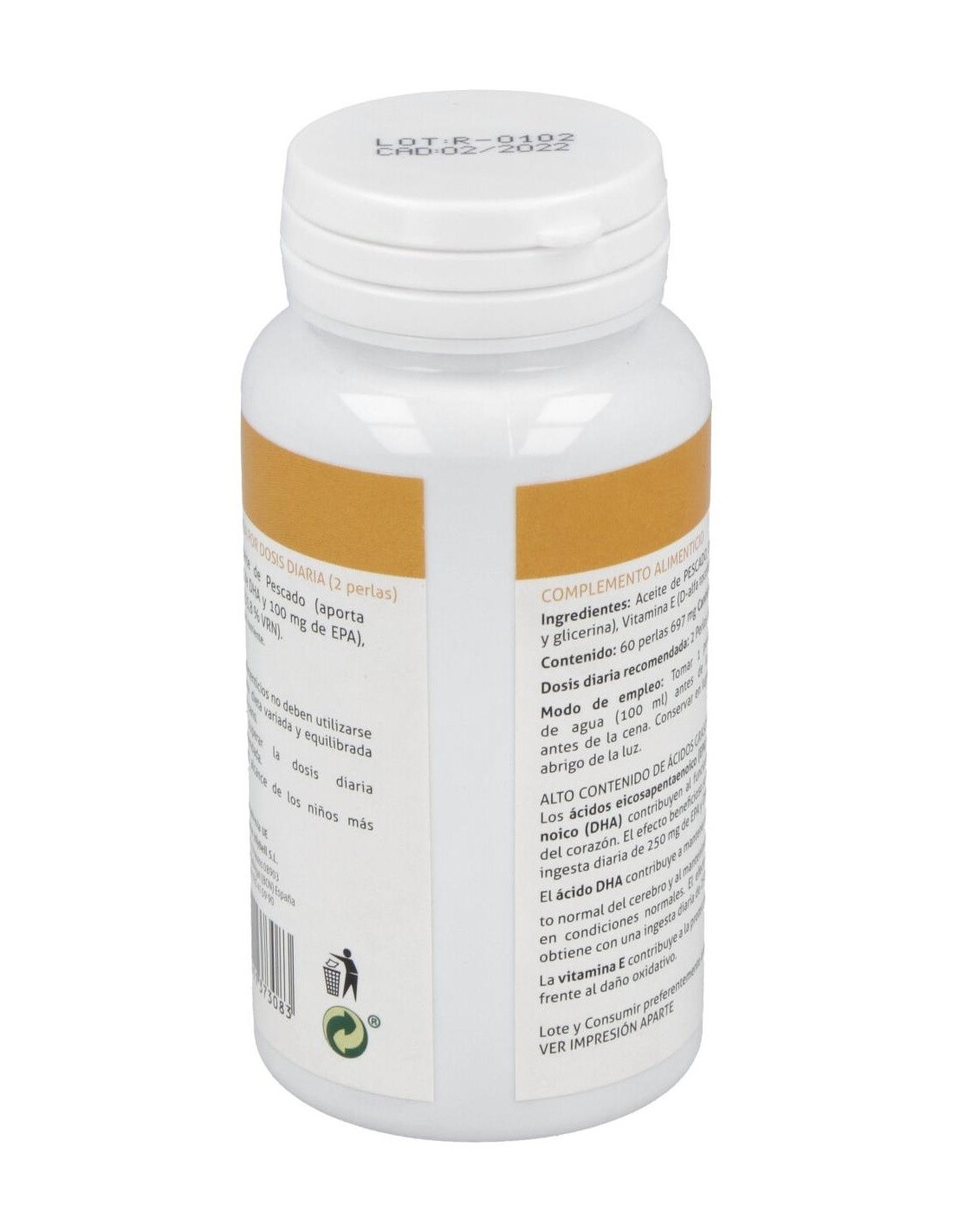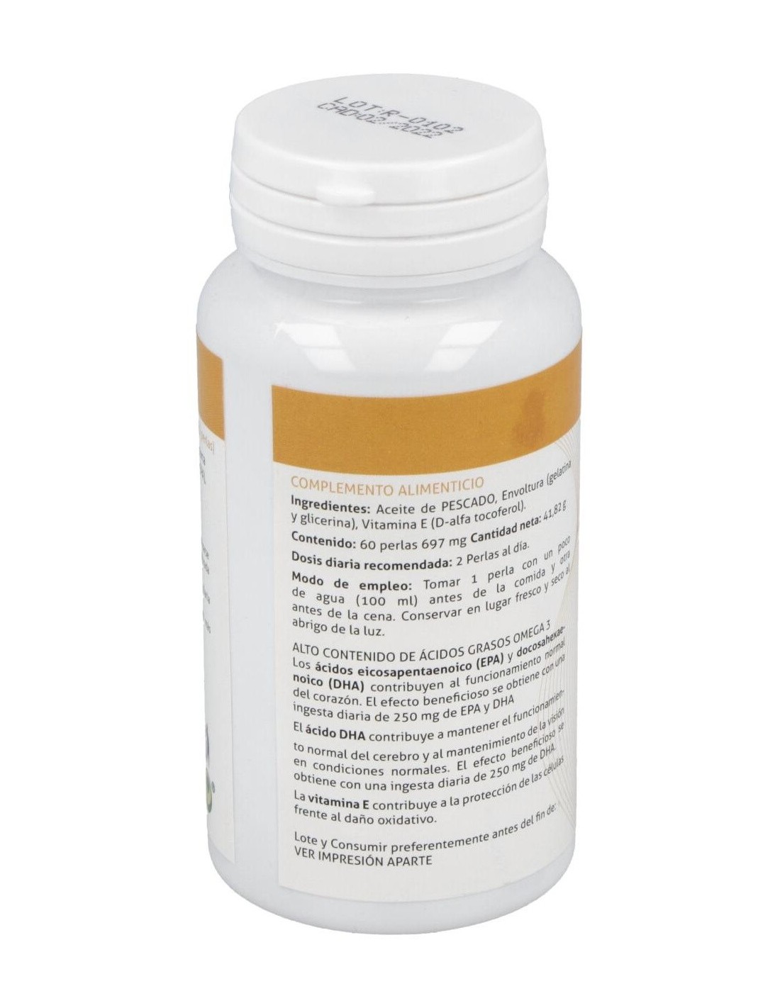 1000 mg de aceite de pescado (aporta omega 3: 500 mg de DHA y 100 mg de EPA), 6,7 mg vitamina E.