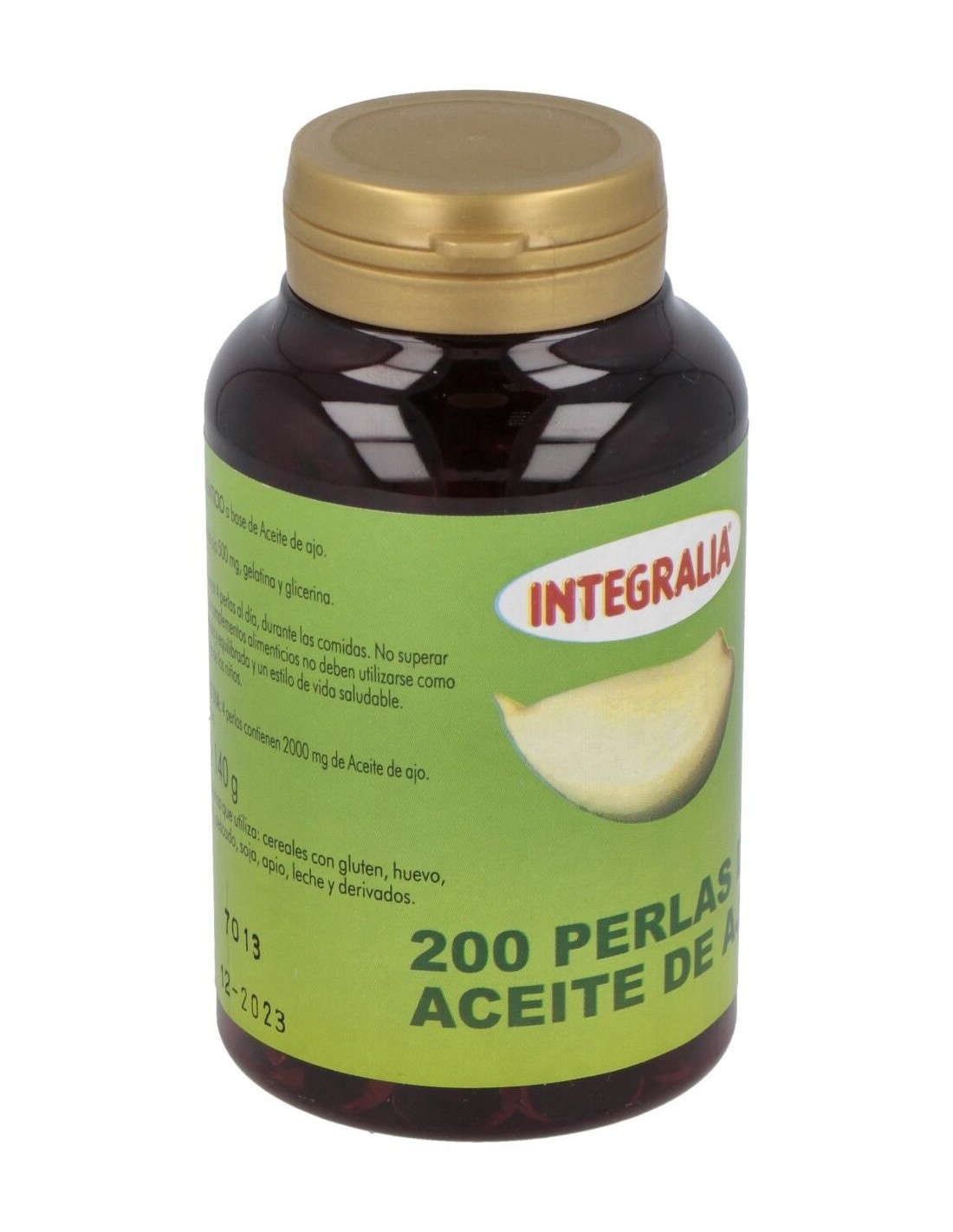 El Aceite De Ajo 200Perlas de Integralia es un suplemento alimenticio para adultos que contribuye al bienestar general mediante su fórmula concentrada en aceite de ajo puro.