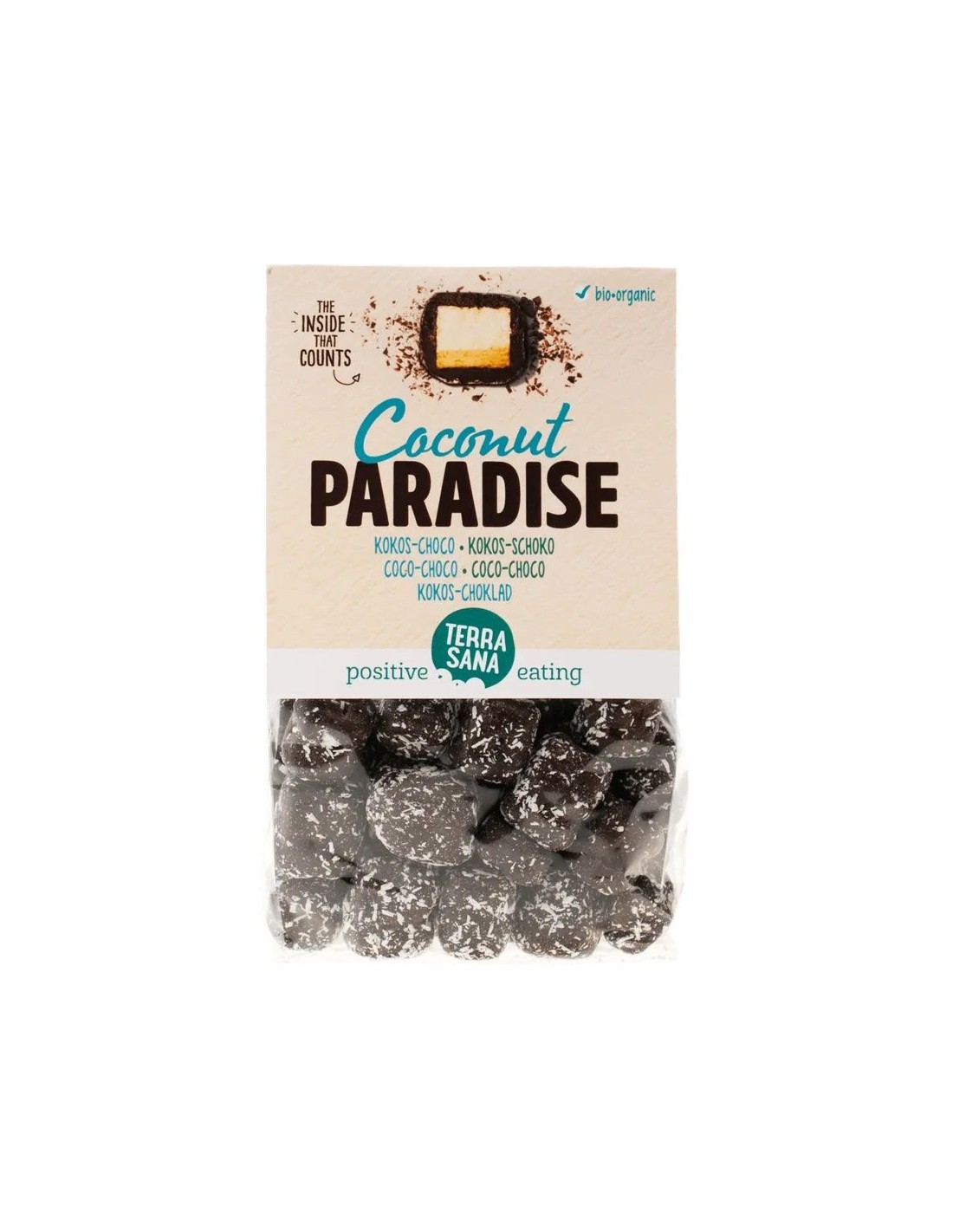 Coconut paradise / Coco-Choco de Terrasana es un snack saludable para consumidores conscientes, que combina coco y chocolate para ofrecer un sabor natural y nutritivo con ingredientes de origen vegetal.
