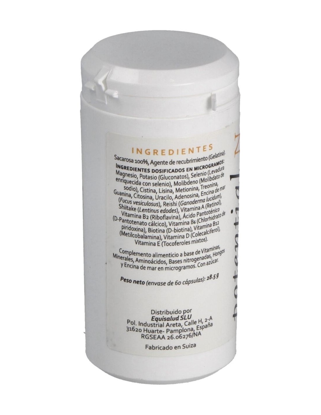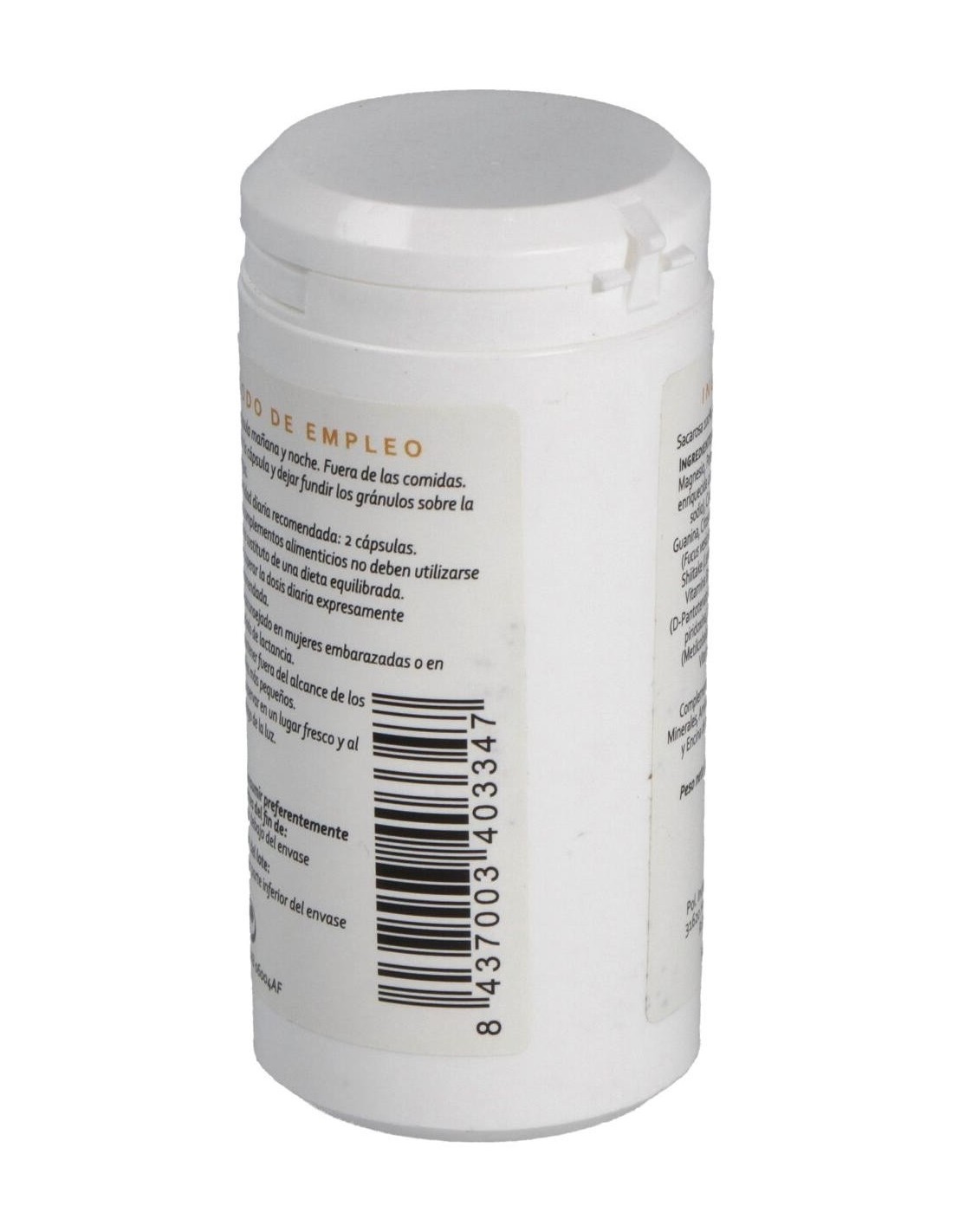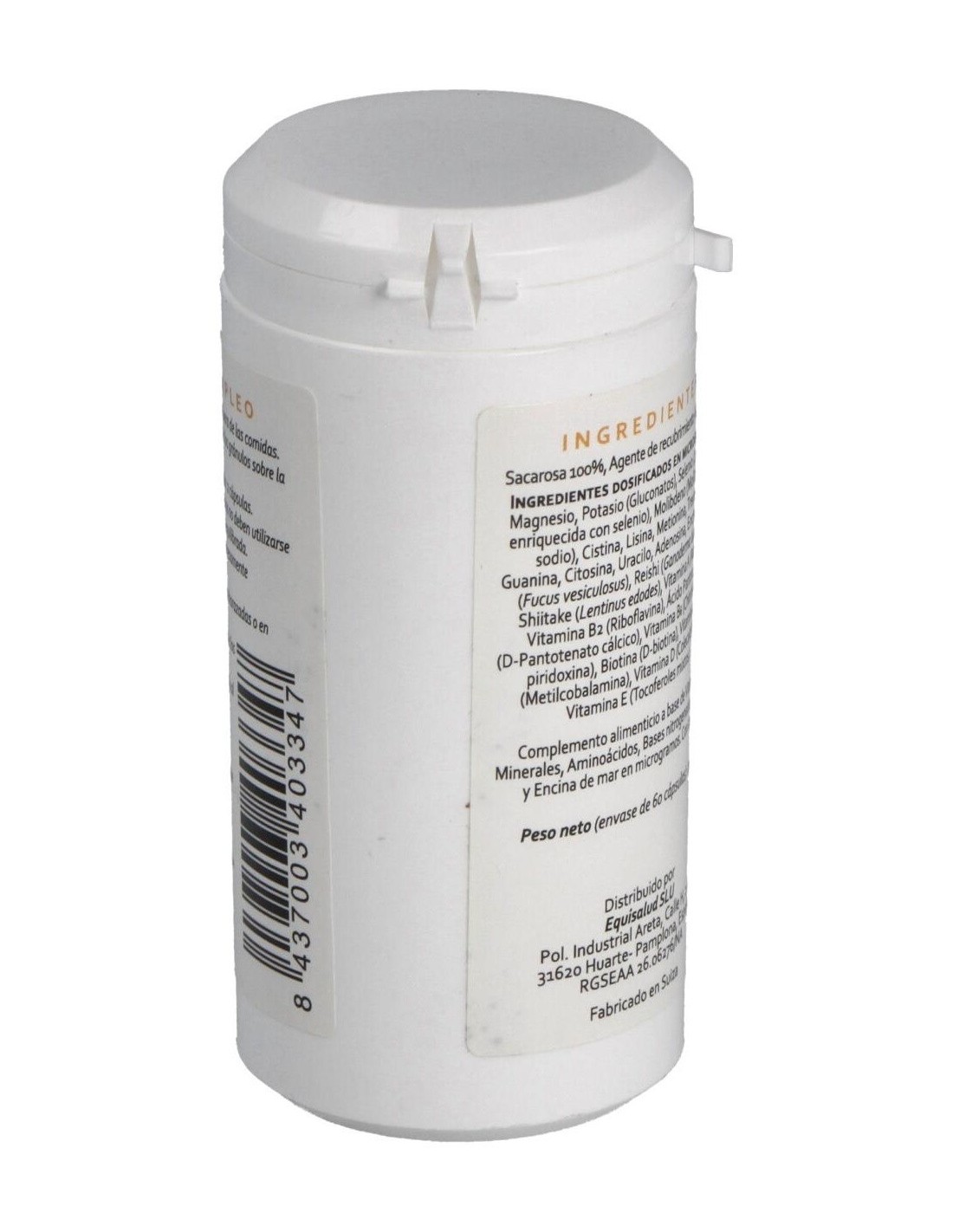 Biotina Gluconato de magnesio Gluconato de potasio L-lisina L-metionina L-treonina Levadura enriquecida con selenio Molibdeno Reishi Shiitake Vitamina A (Retinol) Vitamina B12 (Cianocobalamina) Vitamina B2 (Riboflavina) Vitamina B5 (Ácido pantoténico) Vitamina B6 (Piridoxina) vitamina D Vitamina E.