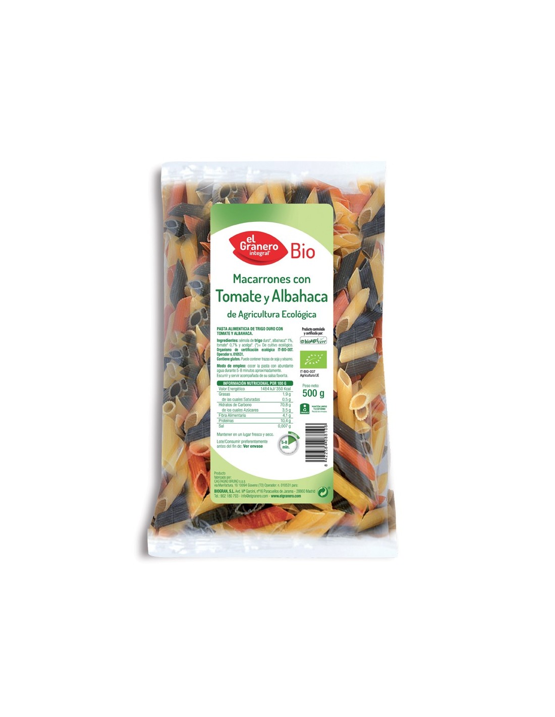 Características y Beneficios Exclusivos de Macarrones Con Tomate Y Albahaca Bio, 500 G de El Granero In