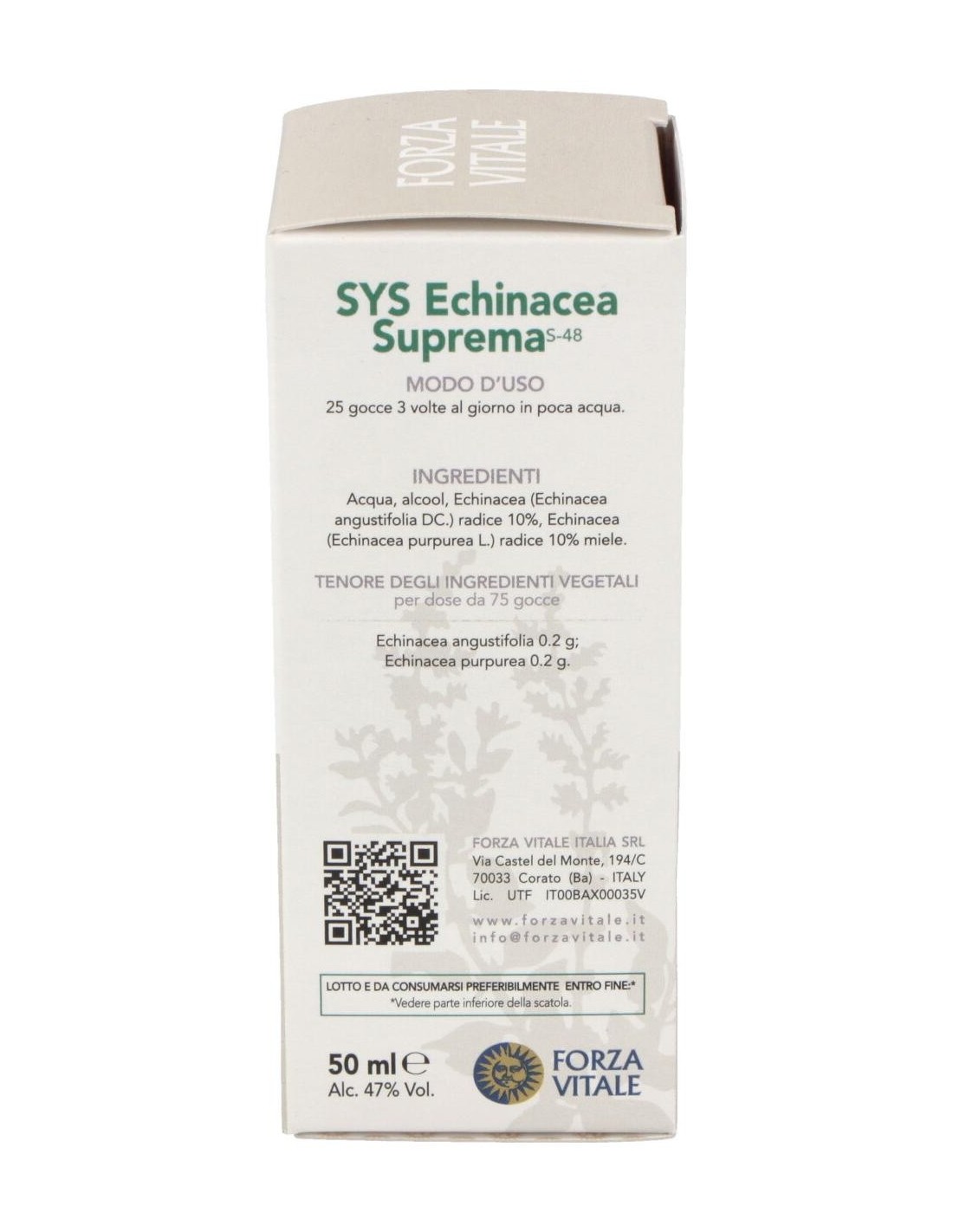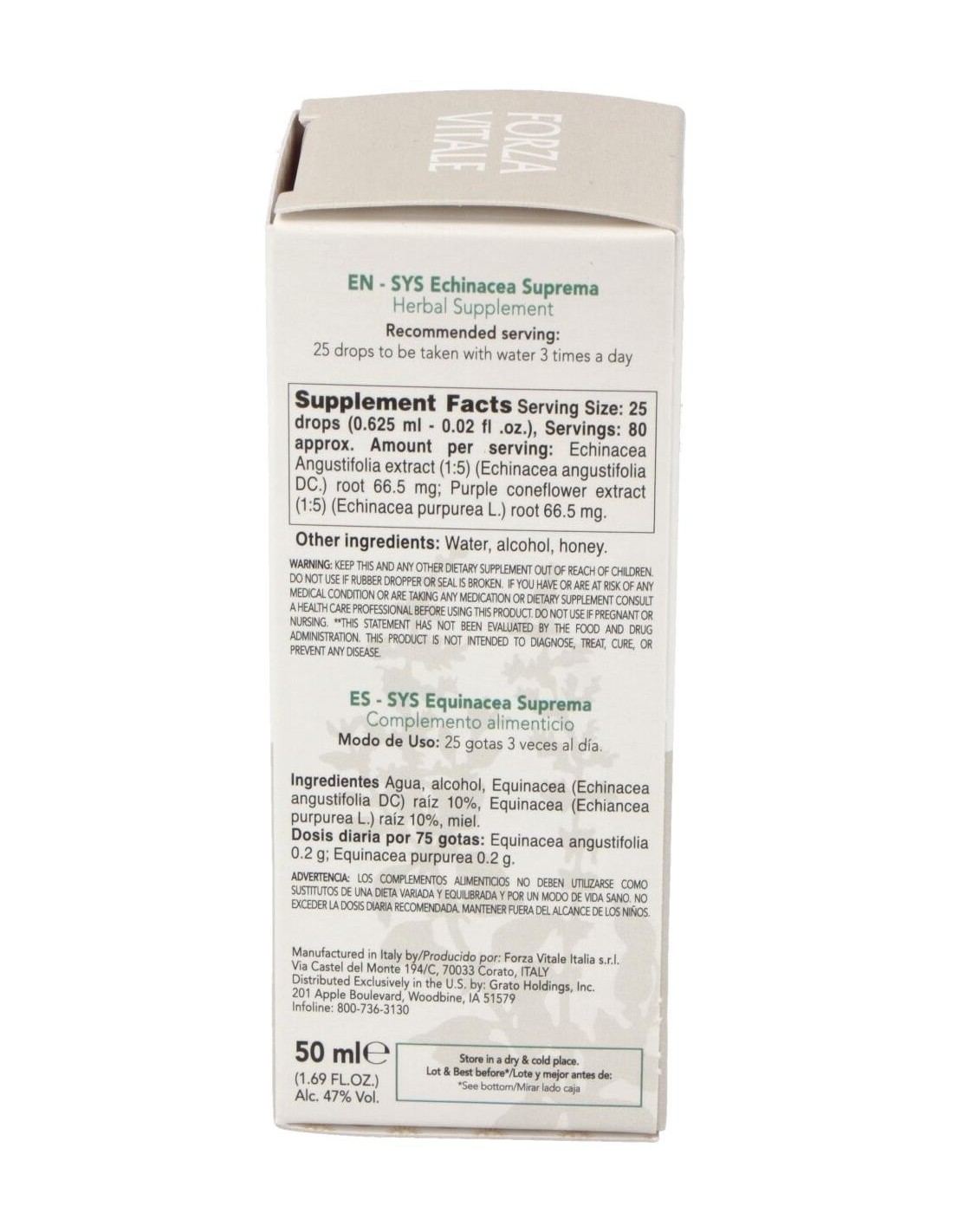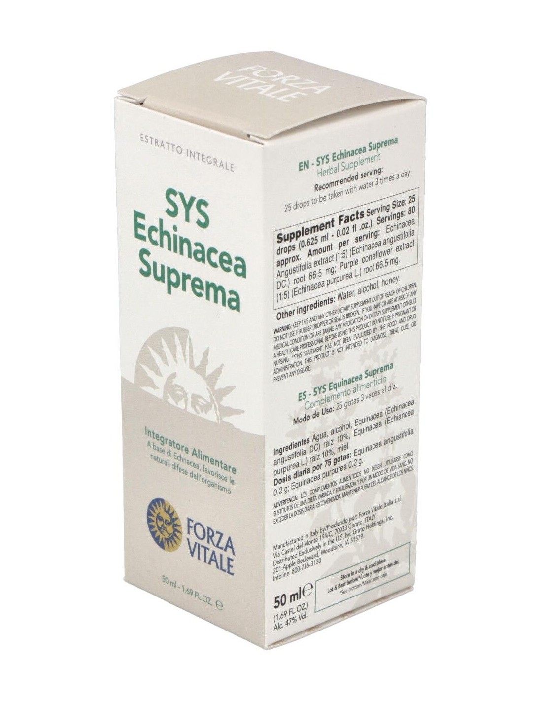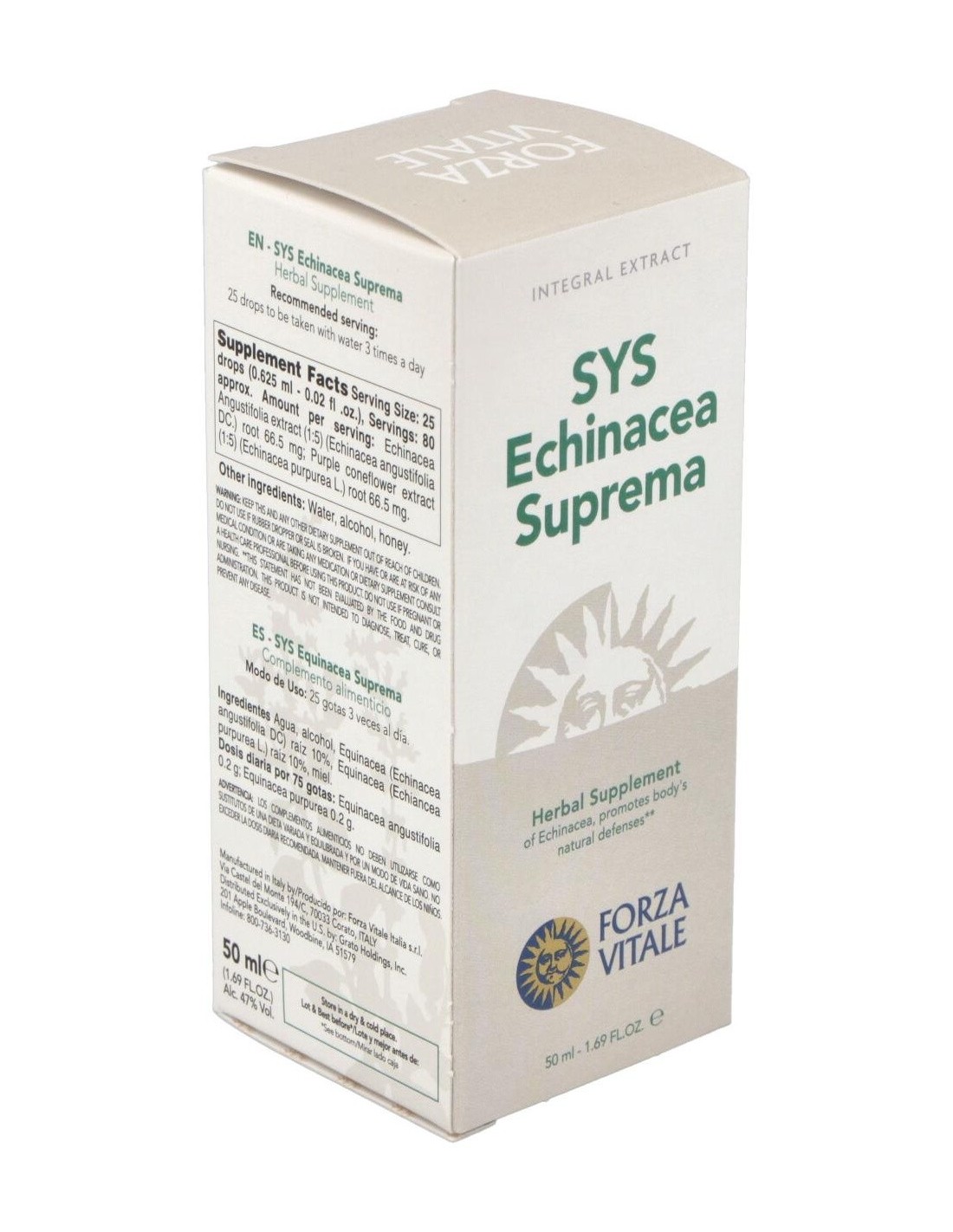 de IL-1. Optima como estimulador de la respuesta inmunitaria, como antiin amatorio en las patologías infectivas y autoinmunes, como riepitelizante en caso de heridas, esta ultima propiedad debida a un principio activo (equinacoside) capaz de inhibir la enzima jaluronidasis ralentizando la velocidad de penetración de los microorganismos en los tejidos, acelera la sanación de las heridas y disminuye el riesgo de infecciones. De la planta se usan las raíces y las partes aéreas. Puede ser útil como coadyuvante en la gripe, en la depresión inmunitaria, en el resfriado, en los síndromes autoinmunes, en la ebre, en las conectivitis, en las dermatitis, en las furunculosis y aftas. Ingredientes:Agua, Alcohol, Equinacea (Echinacea angustifolia) raíz 20%, miel. Ingredientes activos por dosis diaria (2 ml):0,4 gramos de equinacea.Modo de empleo:Adultos: Tomar 25 gotas 3 veces al día en poca agua o vía sublingual.Niños hasta 12 años: Tomar 10 gotas 3 veces al día en poca agua o en zumo de fruta.Presentación:Frasco de 50 ml.