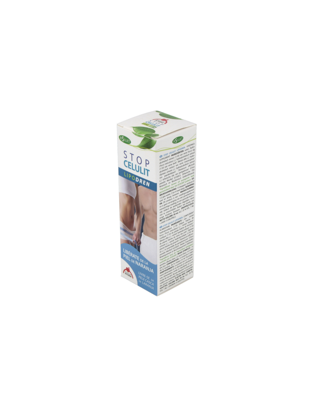 Stop Celulit Lipodren, gracias a los principios activos aportados por el fucus, el abedul y la reina de los prados, ayuda a depurar y a eliminar grasa, agua y toxinas. Además la semilla de pomelo gracias a su aporte en bioflavonoides ayuda a mejorar la circulación sanguínea y facilitar la eliminación de la célula grasa de las zonas más rebeldes. Ingredientes:Extractos hidroalcohólicos (1:10) de planta fresca de: fucus (Fucus vesiculosus L.); abedul* (Betula alba L.); reina de los prados* (Spiraea ulmaria L.); diente de león* (Taraxacum offi cinalis L.); aceite esencial de pomelo* (Citrus paradisi Macfad) A.E.B.B.D. (Aceites Esenciales Botánica y Bioquímicamente Definidos).