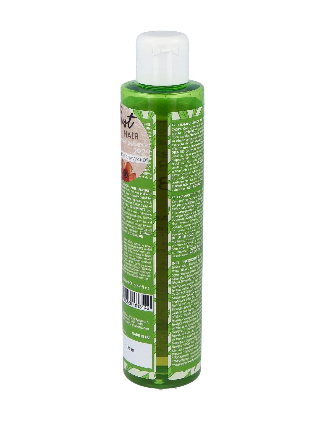 Equilibra la flora del cuero cabelludo, regula el sebo, ayuda a controlar la dermatitis seborreica y calma el picor.