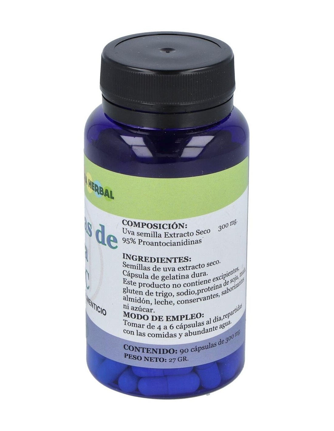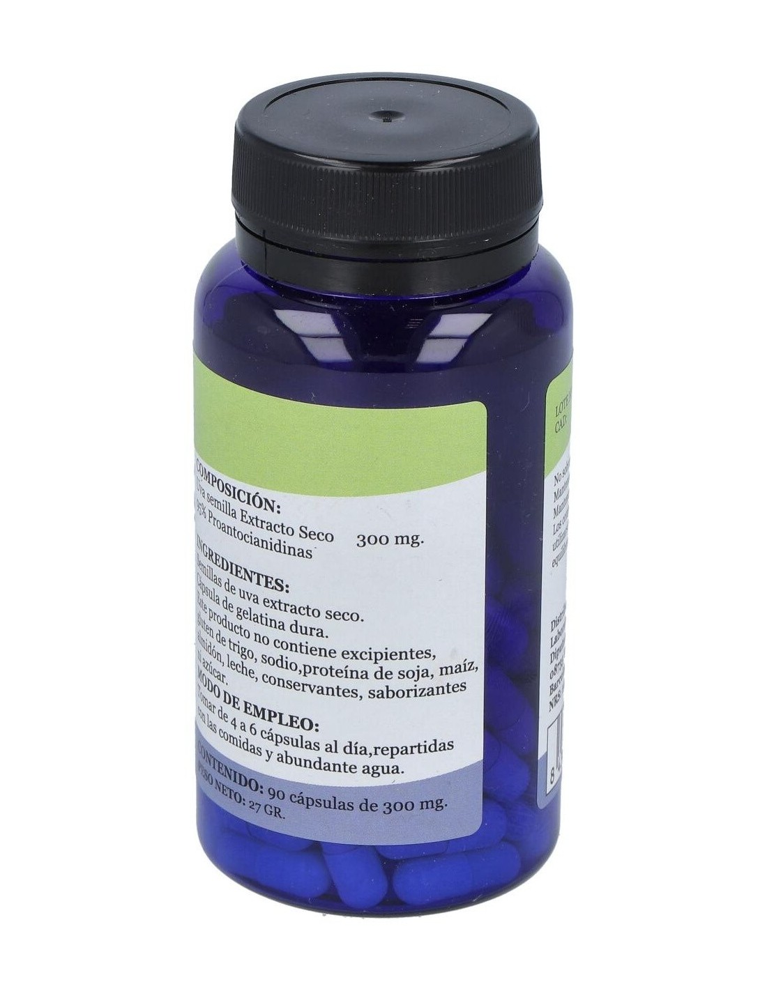 Semillas de Uva extracto seco (95% Proantocianidinas)...300 mg