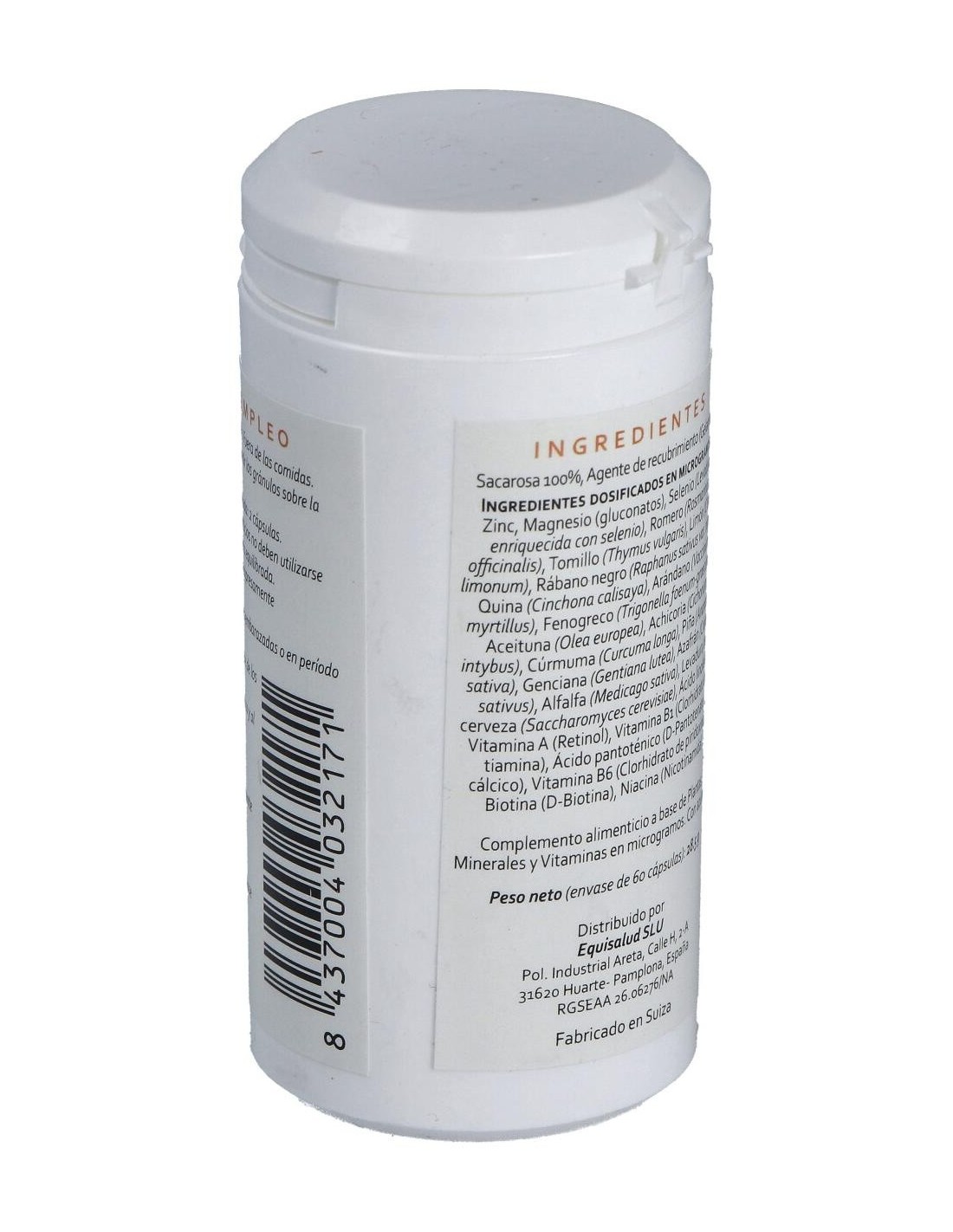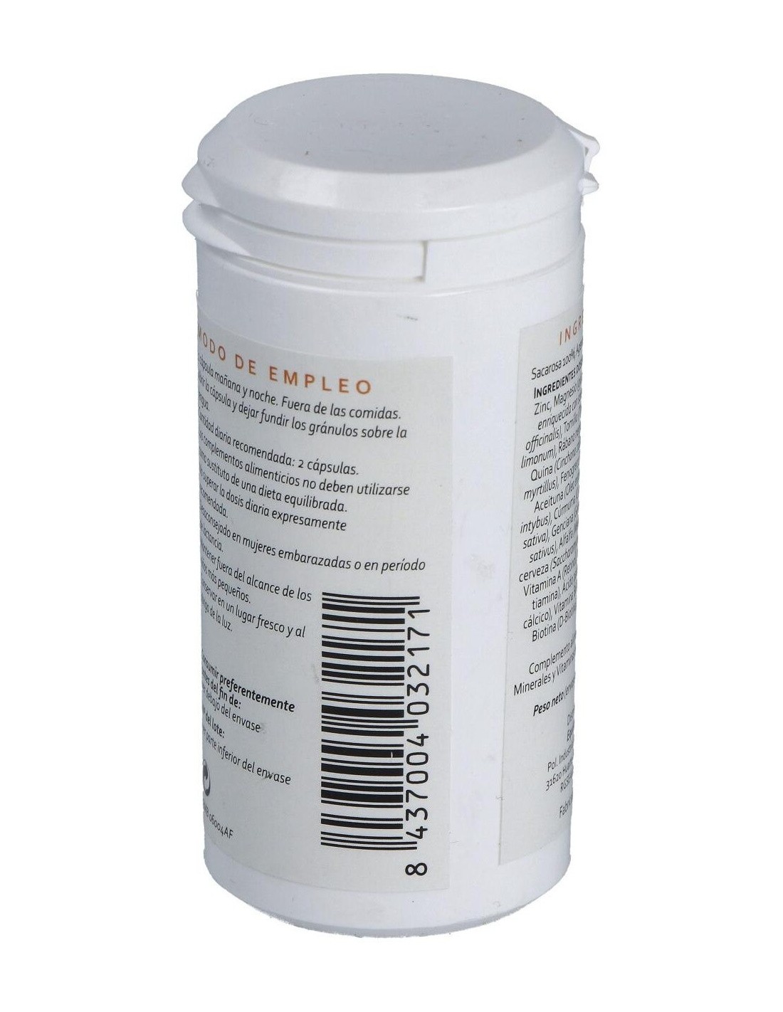 Minerales: zinc, magnesio (gluconatos), selenio (levadura enriquecida con selenio).
