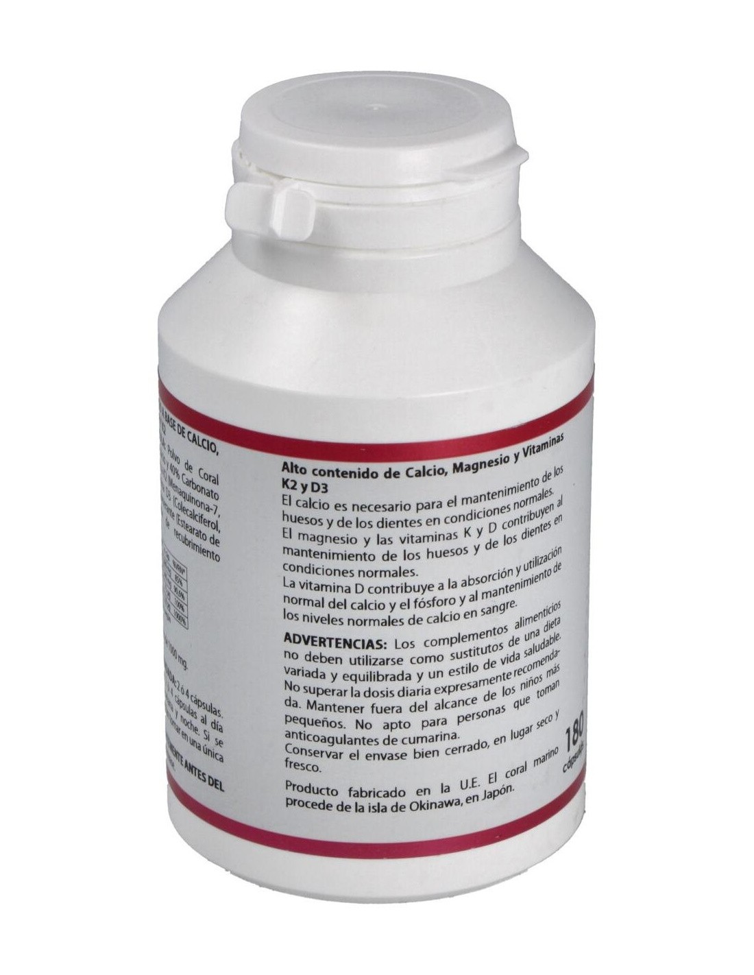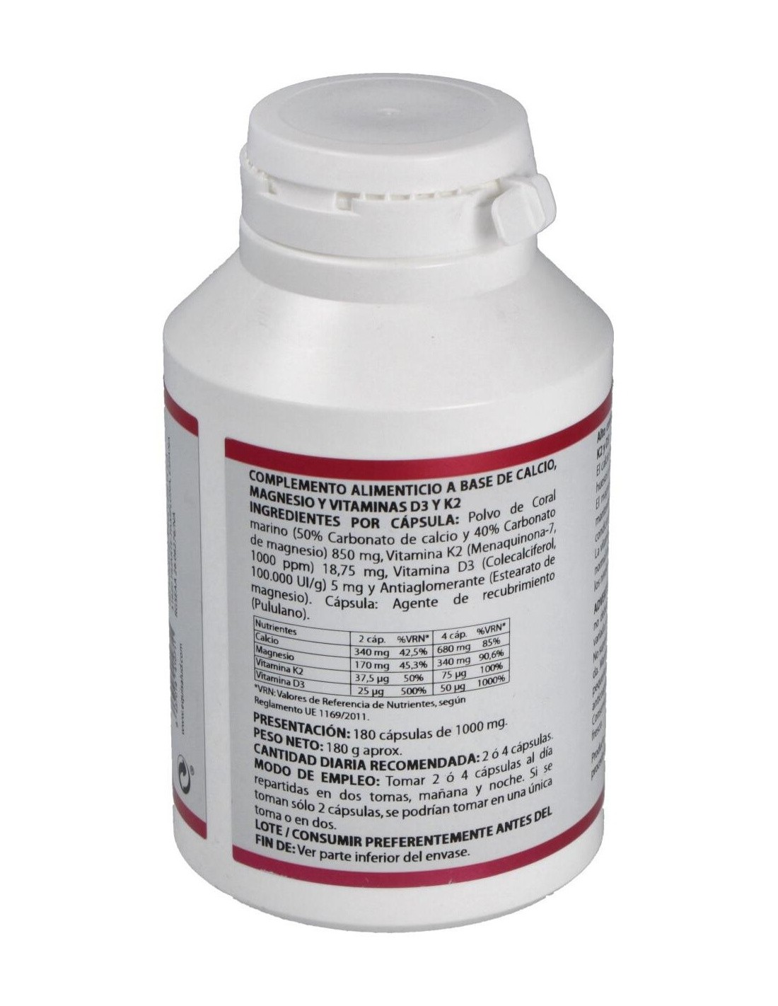 Alto contenido de calcio, magnesio y vitaminas K2 y D3: el calcio es necesario para el mantenimiento de los huesos y de los dientes en condiciones normales. El magnesio y las vitaminas K y D contribuyen al mantenimiento de los huesos y de los dientes en condiciones normales. La vitamina D contribuye a la absorción y utilización normal del calcio y el fósforo y al mantenimiento de los niveles normales de calcio en sangre.