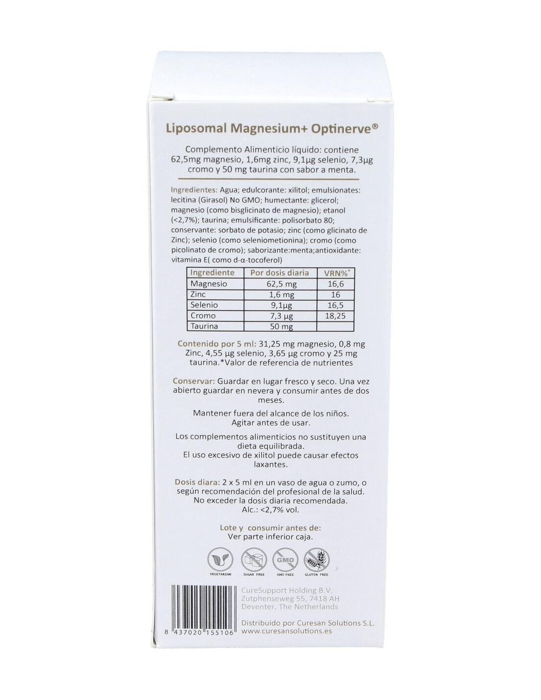 Liposomal Magnesium Optinerve 250Ml. de Curesupport