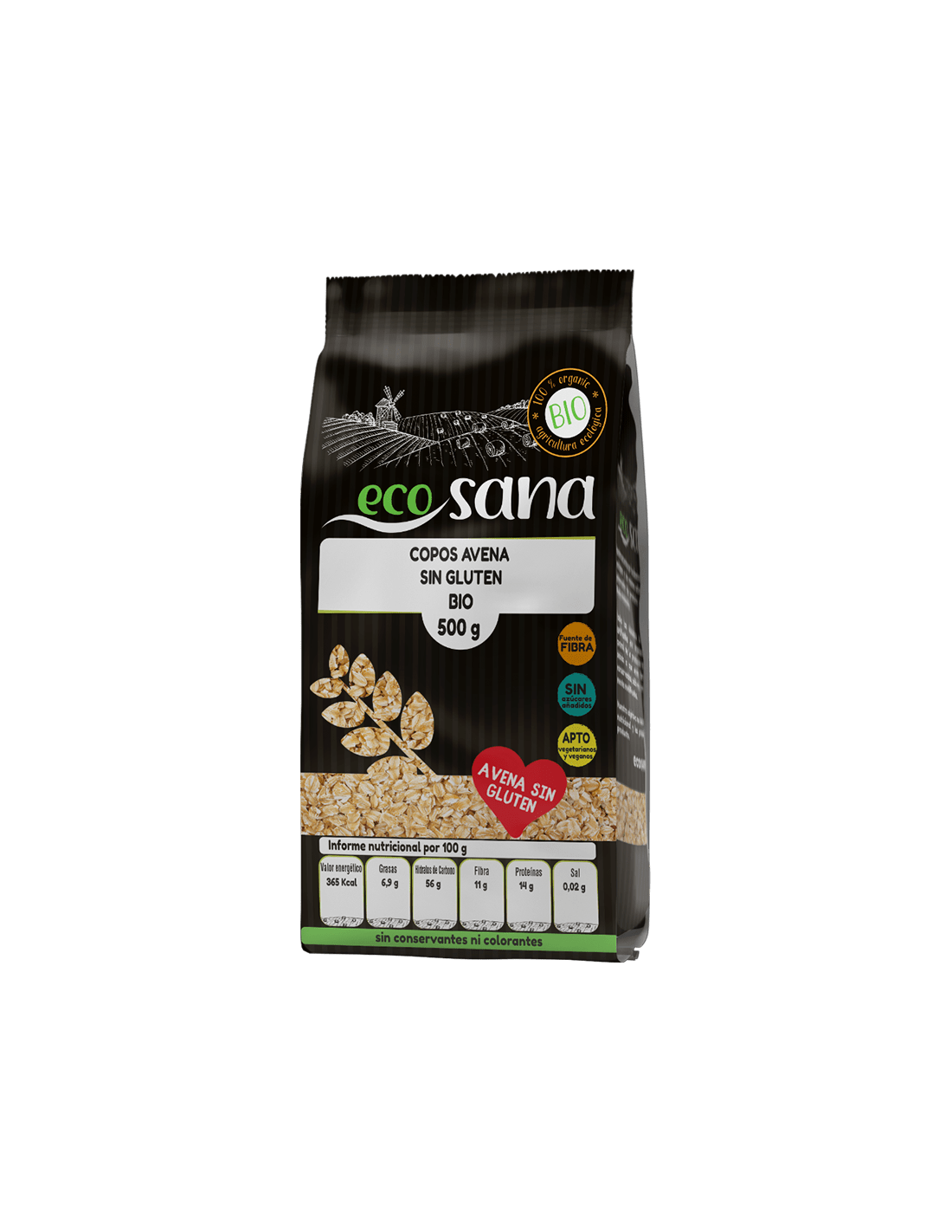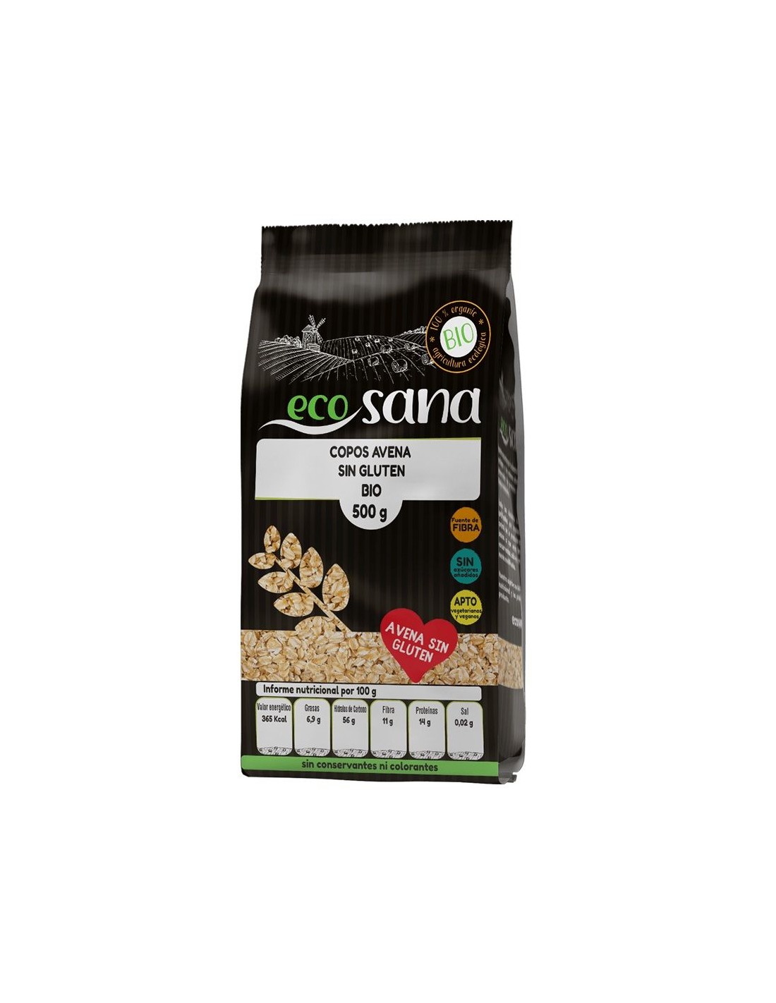 Copos de Avena Gruesos Integrales Sin Gluten de Ecosana proporcionan mucha energía, por lo que es muy recomendado para deportistas y estudiantes. Contiene hidratos de carbono complejos, que son asimilados por el cuerpo lentamente, proporcionando una sensación de saciedad y además tienen un bajo contenido de grasas saturadas.Ingredientes:Copos de avena gruesos integrales Sin gluten*. (*) Procedente de agricultura ecológica.Valor nutricional por 100 gramos: