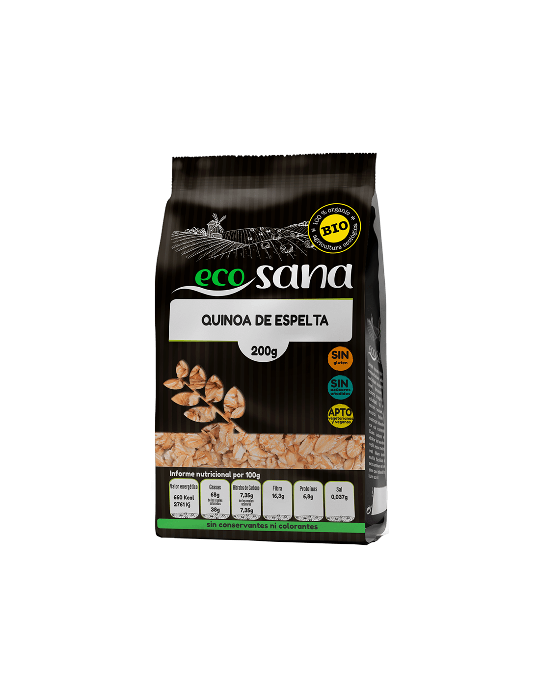Quinoa Copos Bio 200G Ecosana de ECOSANA DRASANVI es una opción saludable y natural para tus desayunos y recetas favoritas. Elaborada con quinoa orgánica de alta calidad, aporta energía, fibra y proteínas vegetales esenciales para una dieta equilibrada. Su textura ligera y sabor suave la hacen perfecta para combinar con yogur, frutas o en batidos. Sin aditivos ni conservantes, es ideal para quienes buscan alimentos nutritivos y ecológicos. Disfruta de un producto 100% bio que cuida de ti y del planeta.