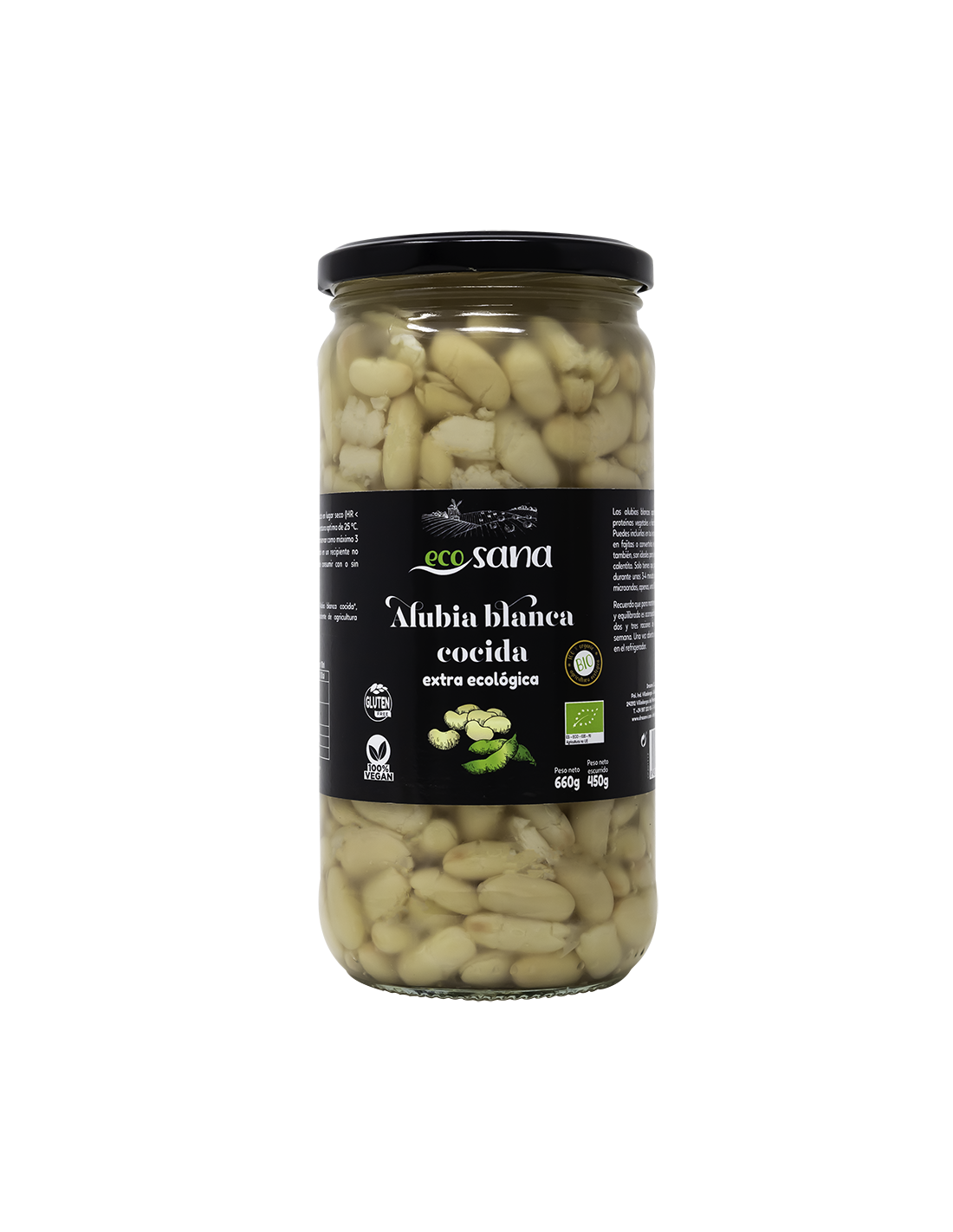 Alubia Blanca Cocida Extra Bio 660-450G Ecosana
