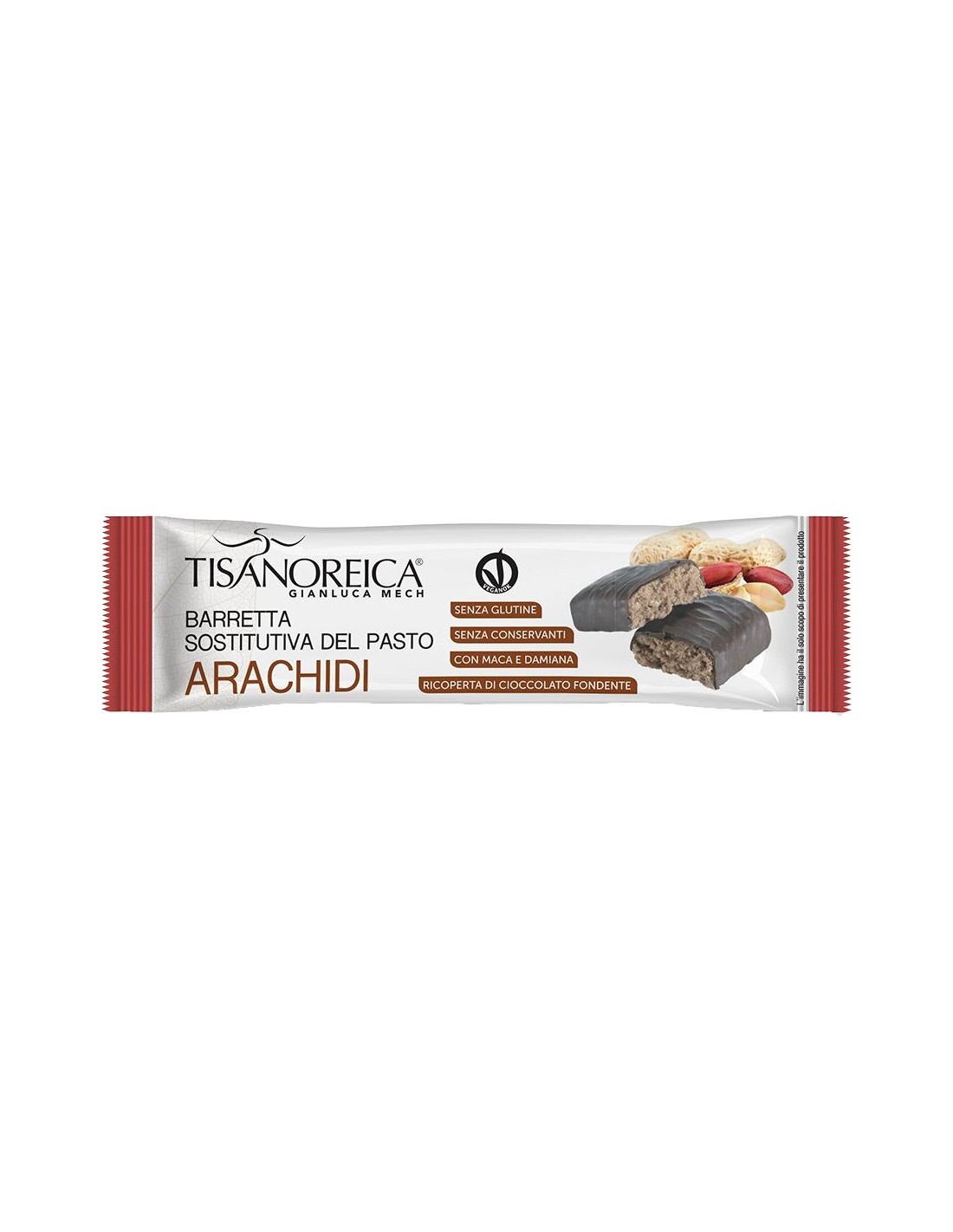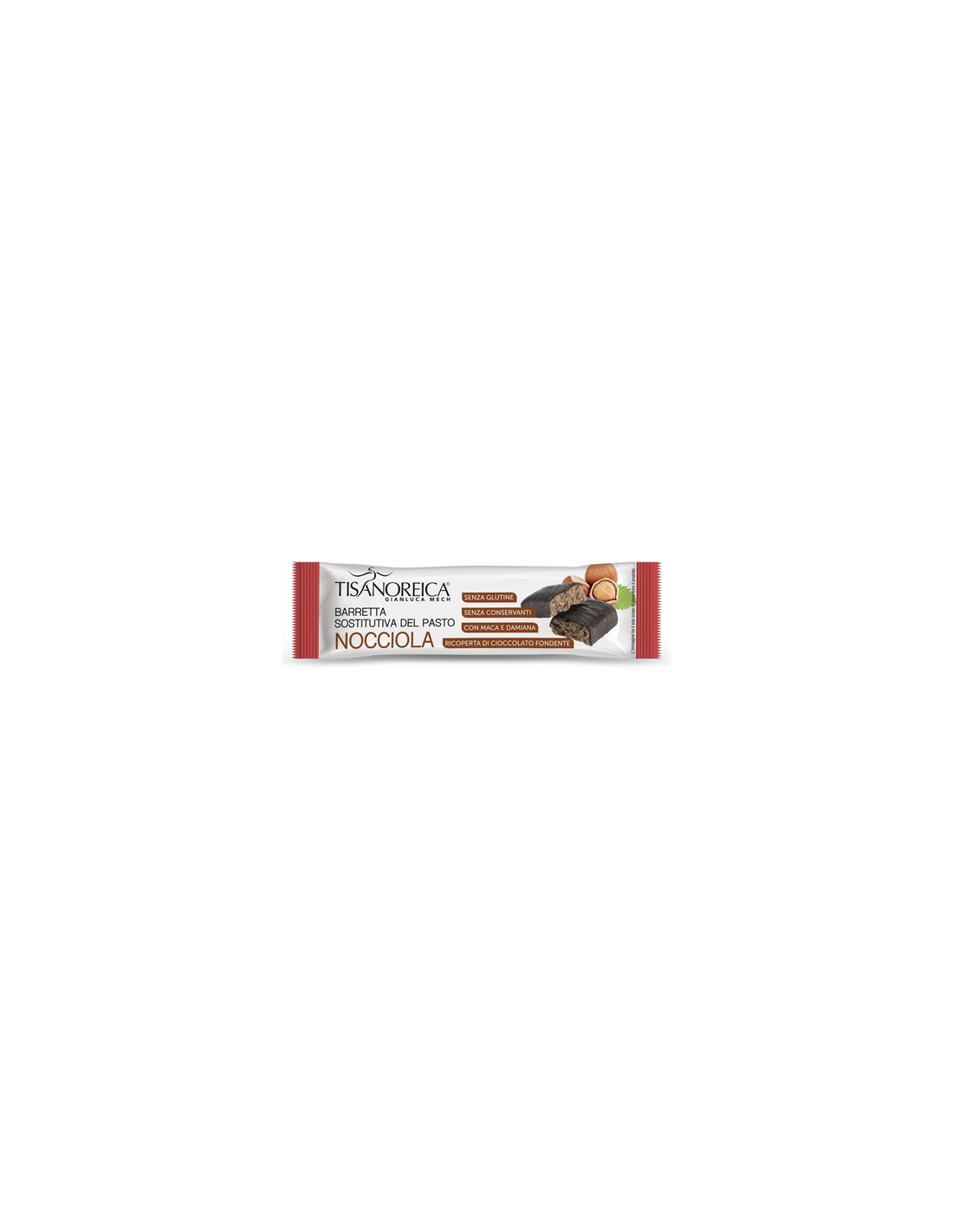 Barrita capaz de sustituir una comida completa. Es rico en nutrientes, incluidas vitaminas y minerales, y proporciona la cantidad adecuada de energía, carbohidratos y proteínas.Son prácticos para llevar contigo y consumir cuando no tienes tiempo para preparar una comida clásica. Se debe acompañar de abundantes líquidos.Ingredientes:Jarabe de fructosa, mezcla de proteínas (caseinato de calcio, proteína del suero de la leche), 12 % de recubrimiento de chocolate negro (pasta de cacao, azúcar, manteca de cacao, lecitina de soja y vainillina), grano de arroz inado y tostado, 3 % de pasta de avellanas sin tostar, premezcla de vitaminas, minerales: raiz de Maca (Lepidium meyenii Walp.), fosfato de potasio dibásico, sodio, fosfato de calcio tribásico, fosfato ferroso dibásico (II), ácido L-ascórbico, nicotinamida, óxido de zinc, acetato de DL alfa- tocoferilo, sulfato de cobre, hoja de Damiana (Turnera diusa Willd.), D-pantotenato de calcio, sulfato de manganeso, riboavina, clorhidrato de piridoxina, clorhidrato de tiamina, acetato de retinilo, ácido pteroil-monoglutámico, D-biotina, yodato de potasio, selenito de sodio, colecalciferol, cianocobalamina, regulador de la acidez (ácido cítrico), oxido de magnesio, saborizante de avellana (contiene leche).Valor nutricional por 60 gramos: